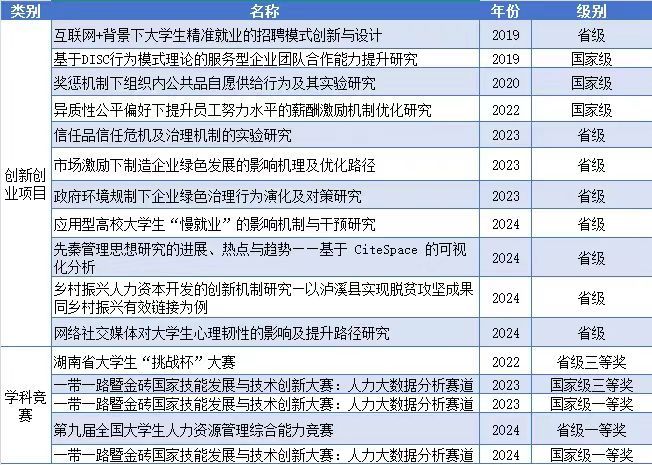 近3年工商管理学院人力资源管理系专业学生参与项目申报与学科竞赛活动统计