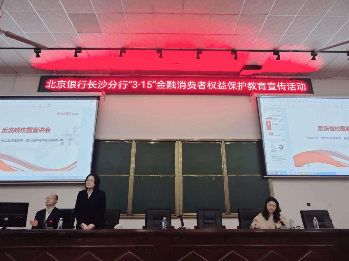 (本网讯)3月13日,工商管理学院携手北京银行长沙分行,以“金融消保在身边,保障权益防风险”为主题,在主校区2J01教室举行安全知识讲座。学院学工办负责老师、全体专职辅导员及600余名学生参加讲座。