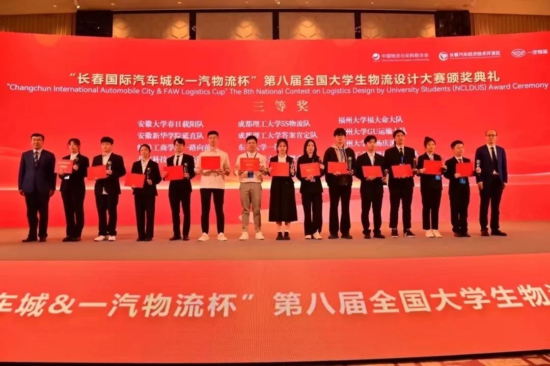 (本网讯)2024年5月26日,“长春国际汽车城&一汽物流杯”第八届全国大学生物流设计大赛在长春汽车职业技术大学圆满落幕。Beat365代表队与天津大学、华中科技大学、北京交通大学、长安大学、西南交通大学等众多985、211高校的参赛队伍同台竞技,发挥出色。Beat365工商管理学院参赛团队“汽”贯长虹队(指导教师:高昕欣老师、杨鹏教授),由22级物流管理专业的廖霨榛(队长)、何雯宇、胡书昊,21级物流管理专业的钟财龙和22级数据科学与大数据技术专业的罗岩5位同学组成,参赛作品《新质生产力赋能长春一汽物流园区高质量发展方案设计》荣获全国三等奖,5位同学均获得了《物流职业能力等级证书(中级)》(中物联)。