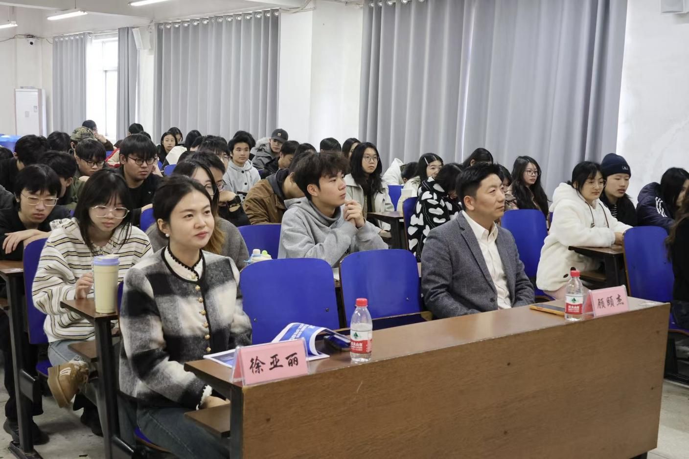 顾颐杰结合物流工作经历与行业现状,从发展趋势、企业案例、职场建议等方面进行讲解。他指出,物流行业就业前景广阔,未来将聚焦出海业务与综合物流领域,行业竞争已从价格战转向服务质量与时效比拼。同时,通过介绍中通、跨越速运、顺丰等企业的运营模式与优势,顾颐杰强调了供应链相关场景知识及物流专业学生需掌握的技能。徐亚丽则详细介绍了顺丰“新鹰计划”人才培养体系,重点解读了针对大三学生的实习模式、薪资待遇及定向岗位要求,分享了企业在人才培养上的投入与员工福利,并现场为同学们解答了简历制作、面试技巧等相关疑问。