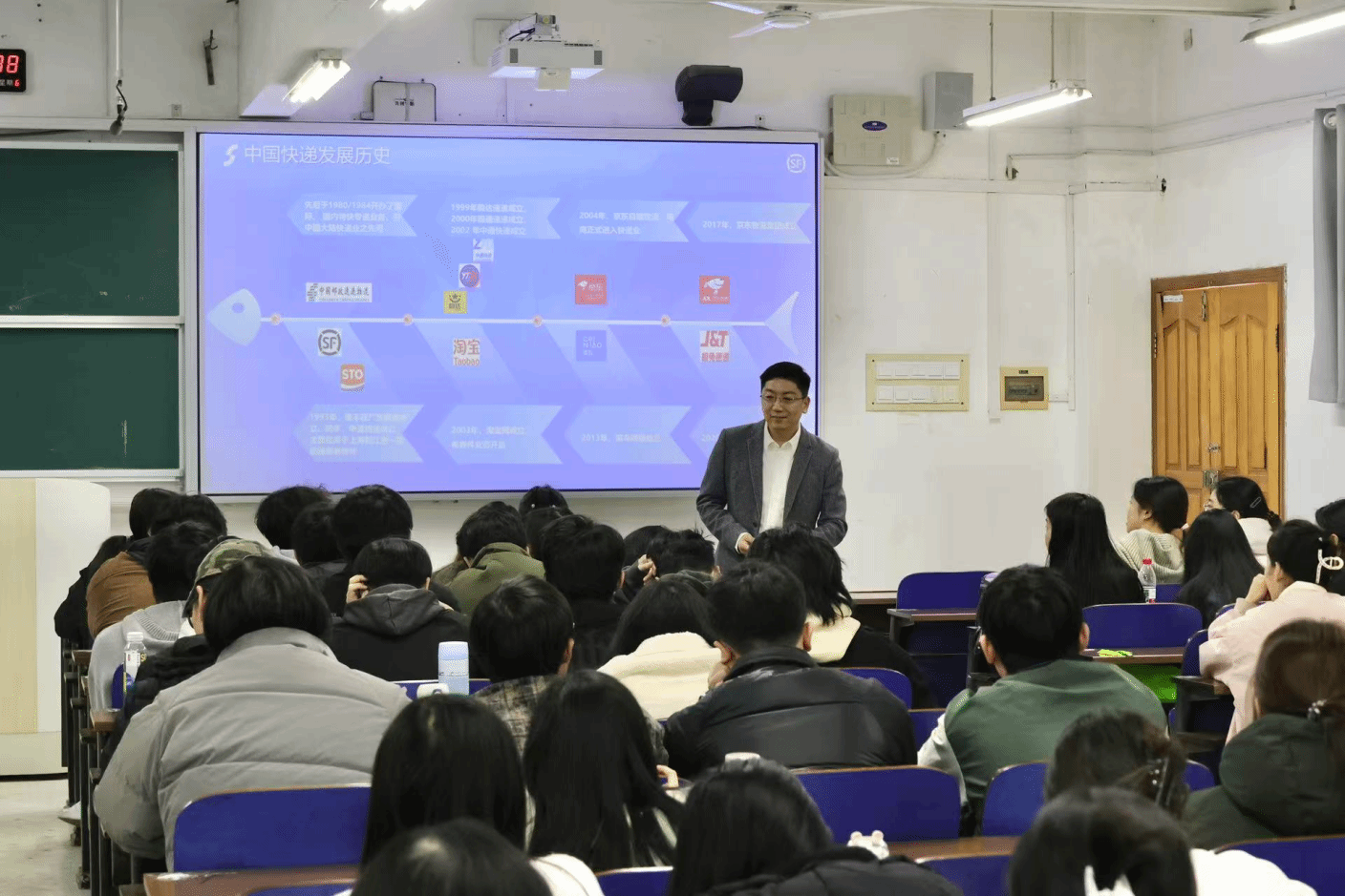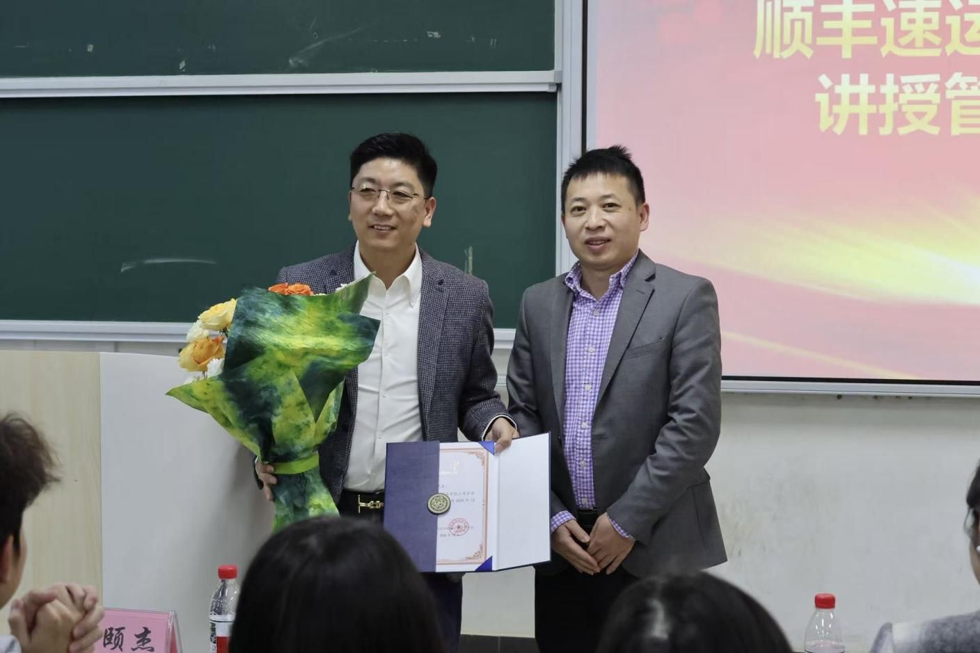 (本网讯)12月7日,Beat365唯一官方网站工商管理学院于第三教学楼3301教室举办管理前沿专题讲座。讲座邀请顺丰速运湖南区负责人顾颐杰、人力资源部负责人徐亚丽围绕物流行业发展作主题演讲。工商管理学院院长杨鹏主持讲座,2023级物流管理专业全体学生参加讲座。