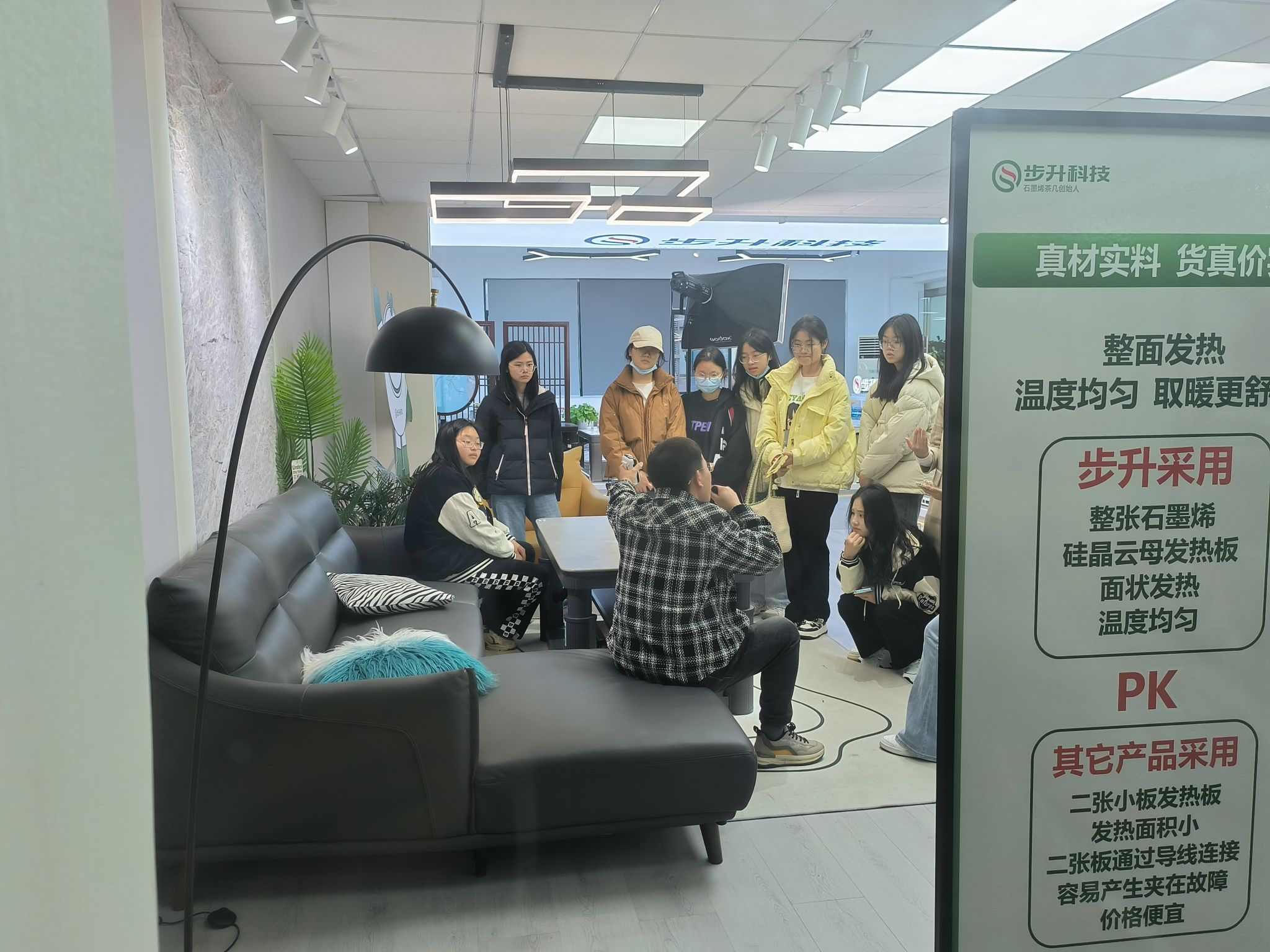 首先,学生们参观了步升取暖公司的办公区域。在步升取暖公司李总监的带领下,大家了解到企业的运营日常、品牌管理以及新媒体营销等方面的实际操作。