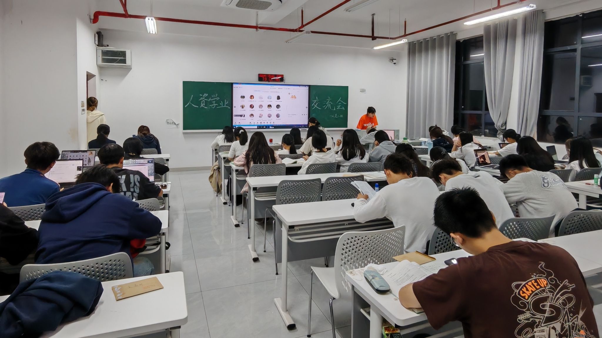(本网讯)为助力2024级新生深入了解考研知识,科学规划学业生涯。11月14日晚,工商管理学院举办考研经验分享会。会议邀请了人力资源管理专业优秀毕业生、中国地质大学企业管理专业在读研究生欧阳维、胡思仪作经验分享。2024级人力资源管理一、二班全体同学参加会议。
