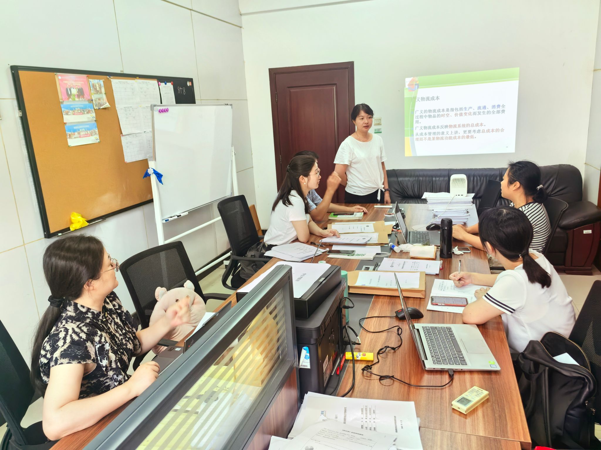 (本网讯)为进一步迎接即将到来的审核评估,提升教师教学水平,深化课堂教学改革,7月7日上午10点开始,物流管理教研室组织开展了教师磨课活动。活动由教研室主任汤春华老师主持,全体教研室教师积极参与,现场气氛热烈,成效显著。为达到优化课堂教学效果的过程,此次物流教研室的磨课活动分为三个环节:教师说课、课堂模拟演示和集体评课。