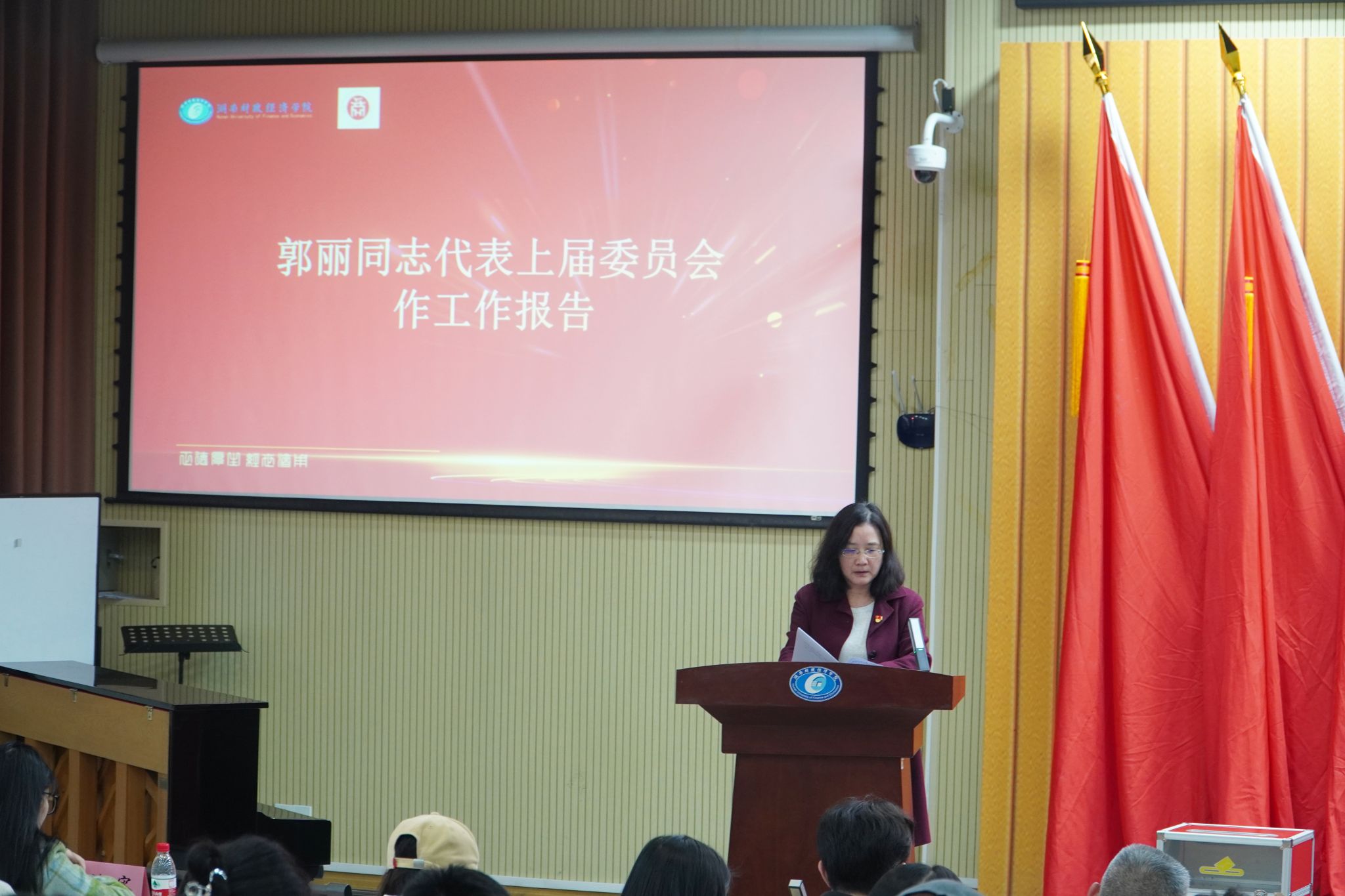 会议在庄严的国歌声中拉开序幕。工商管理学院党委书记郭丽代表上一届党委,以“加强内涵建设、提升办学质量,奋力开创工商管理学院工作新局面”为主题作工作报告。全面回顾并总结五年来工商管理学院党委取得的工作成绩和基本经验,明确提出学院党委今后五年发展的奋斗目标和主要工作思路。