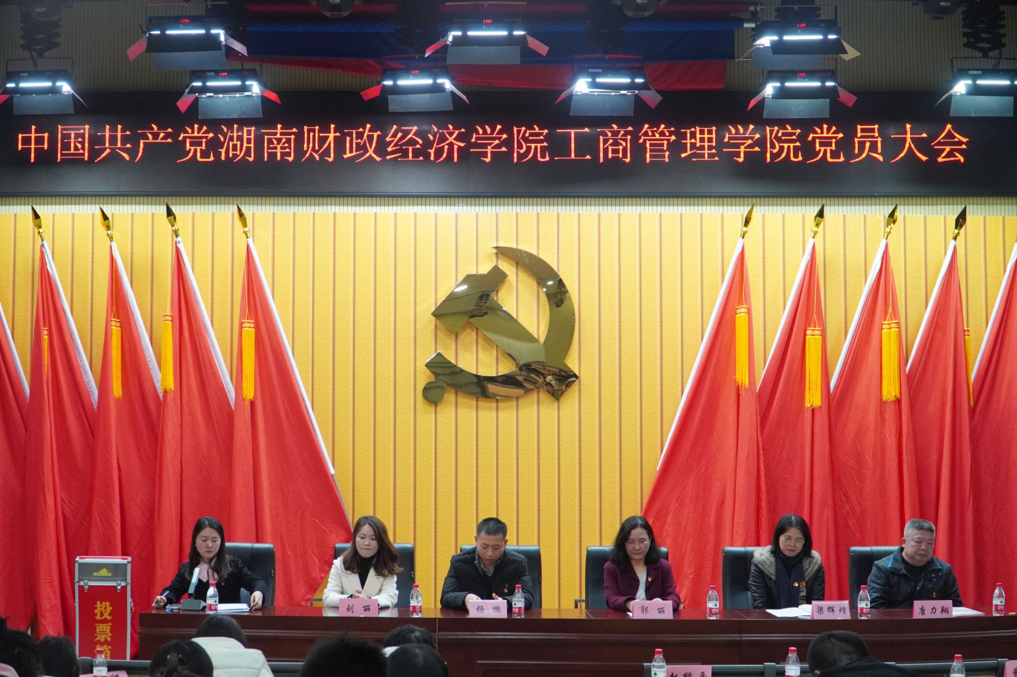 大会听取并审议了工商管理学院第一届党委组织委员肖艳娟作的党费收缴使用情况报告;酝酿委员候选人名单;讨论大会选举办法、酝酿新一届委员会候选人预备人选名单、推选监票人、计票人名单及讨论了委员会工作报告决议。先后审议通过了选举办法、新一届党委委员候选人名单、监票人名单,并宣布计票人名单。