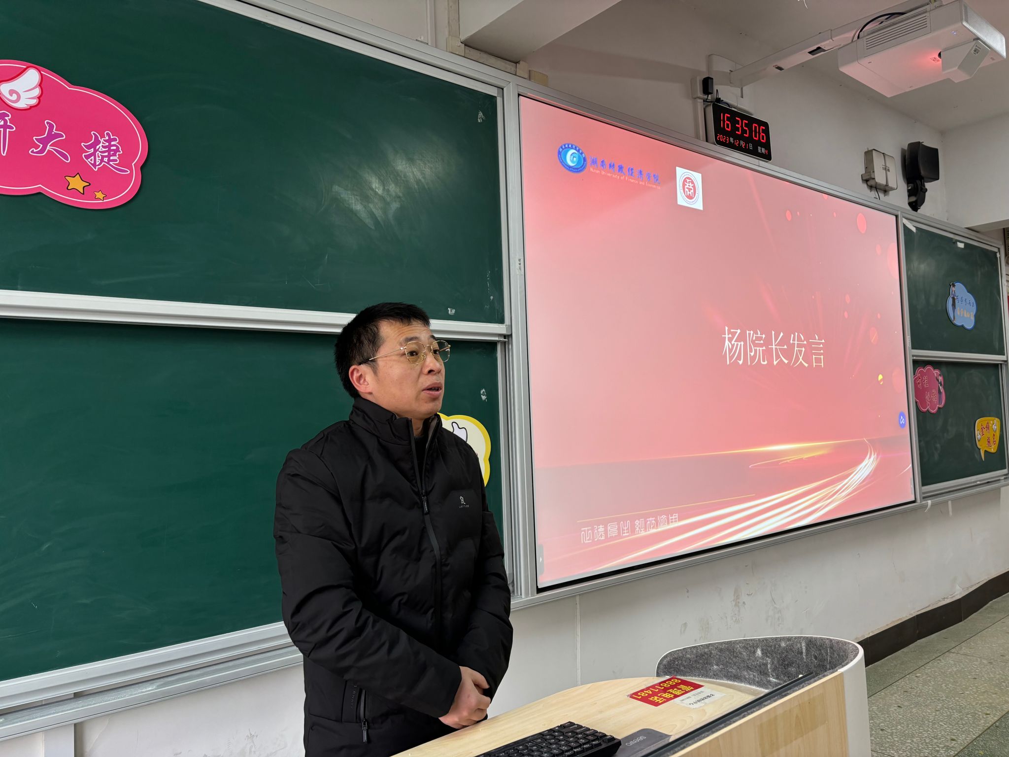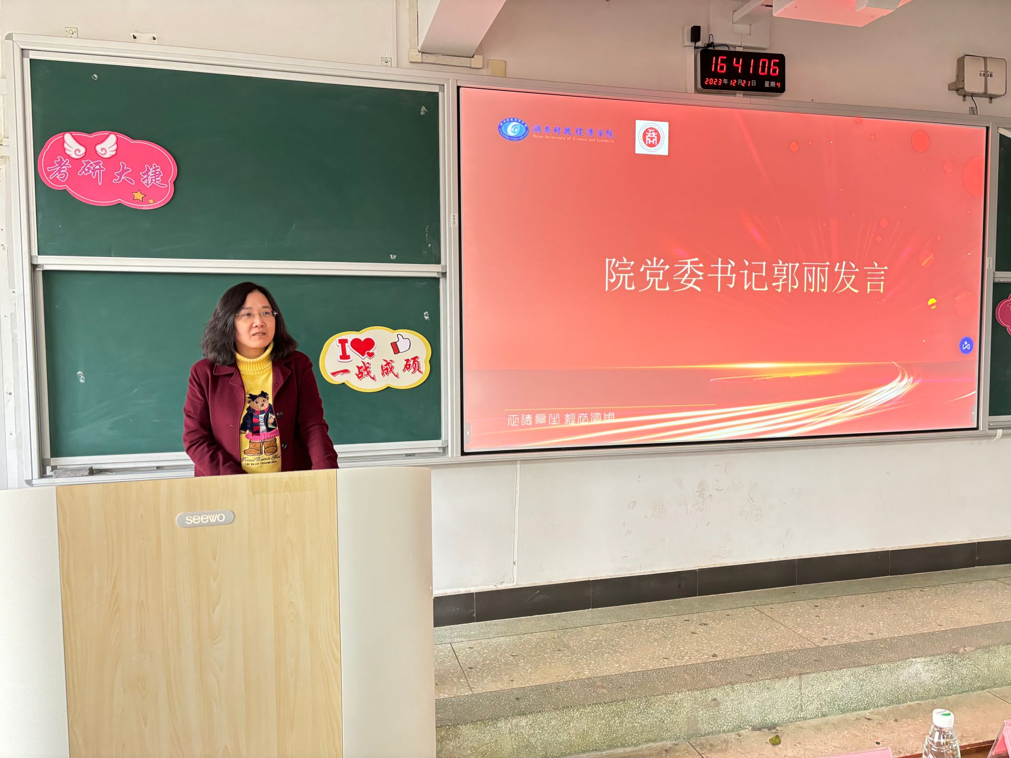 接着,肖艳娟老师播放了往届考研成功学生的祝福视频,这些学生在视频中分享了自己的考研经历和成功经验,为即将参加考研的学生们提供了宝贵的参考和借鉴,不仅激励了考研学子,也增强了考研学子的自信心。