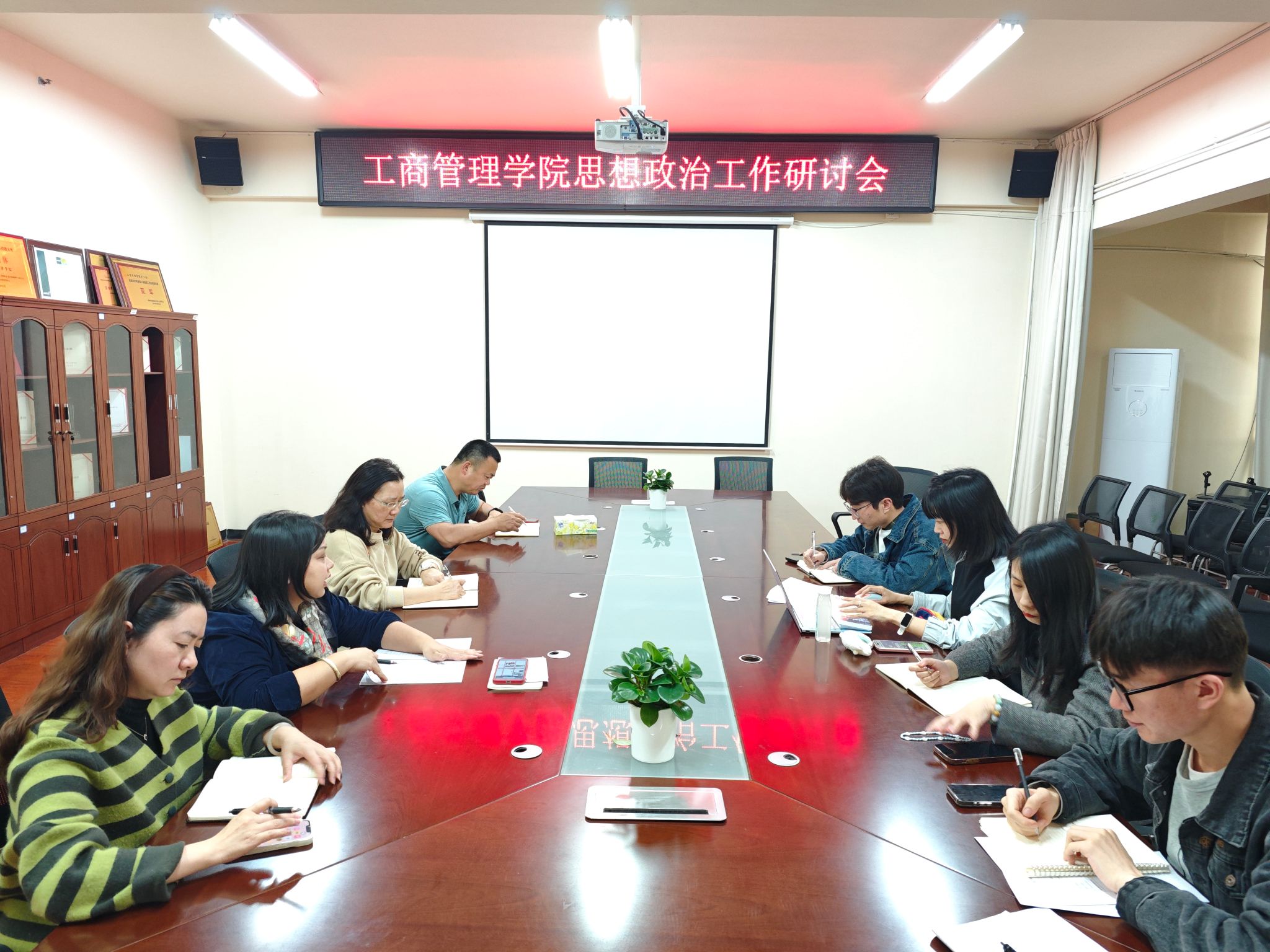 (本网讯)4月9日下午,工商管理学院在办公楼414-1会议室召开“领航新时代,铸魂育新人”主题思想政治工作研讨会。学院党委书记郭丽出席会议,全体辅导员参会。会议由学院学工办主任肖艳娟主持。
