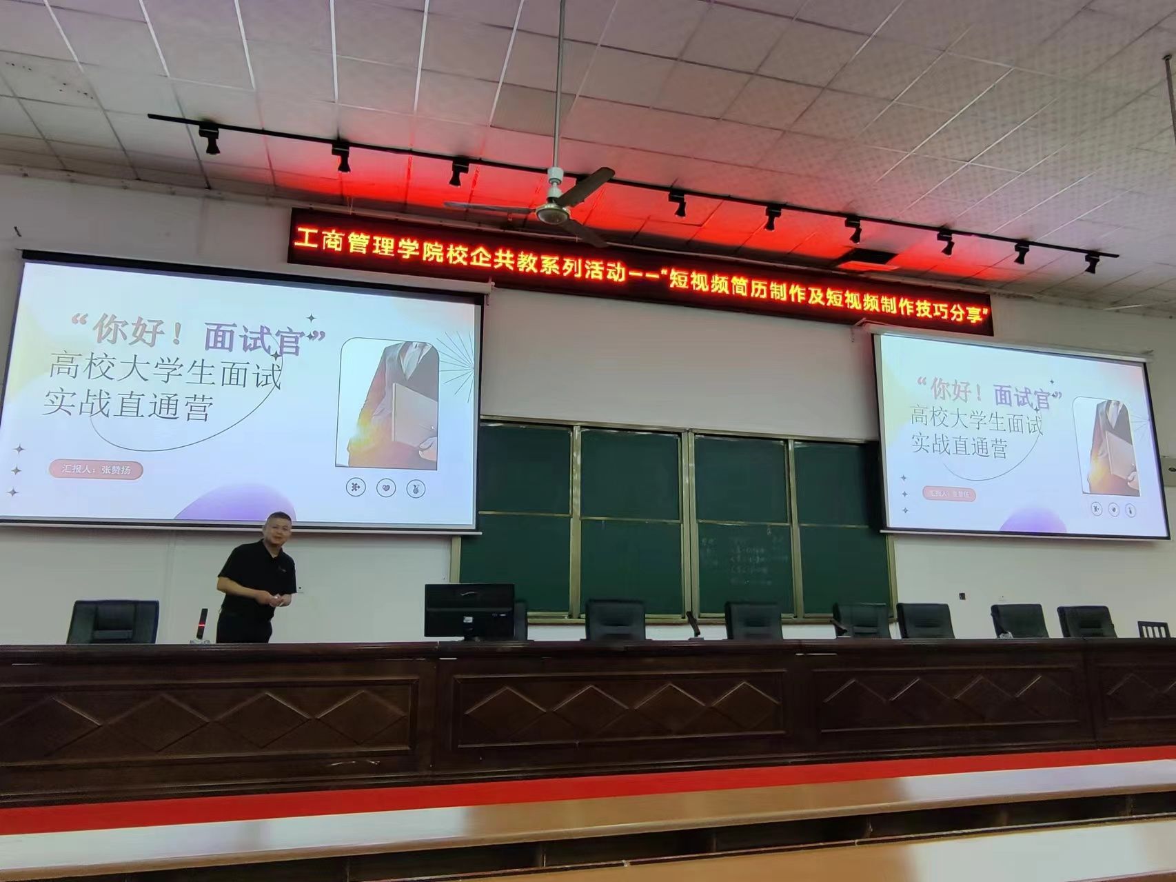 (本网讯)5月10日,工商管理学院携手方程圈联合发起人、六识文化运营副总张赞扬,求职辅导教练郑熙及IT公司联合创始人曾柏人,共同举办工商管理学院第四届“校企共教”系列活动之短视频简历制作技巧分享。现场同时启动了“你好!面试官”高校大学生面试实战直通营Beat365唯一官方网站专场活动。学院学工办负责老师,全体专职辅导员及200余名学生参加活动。
