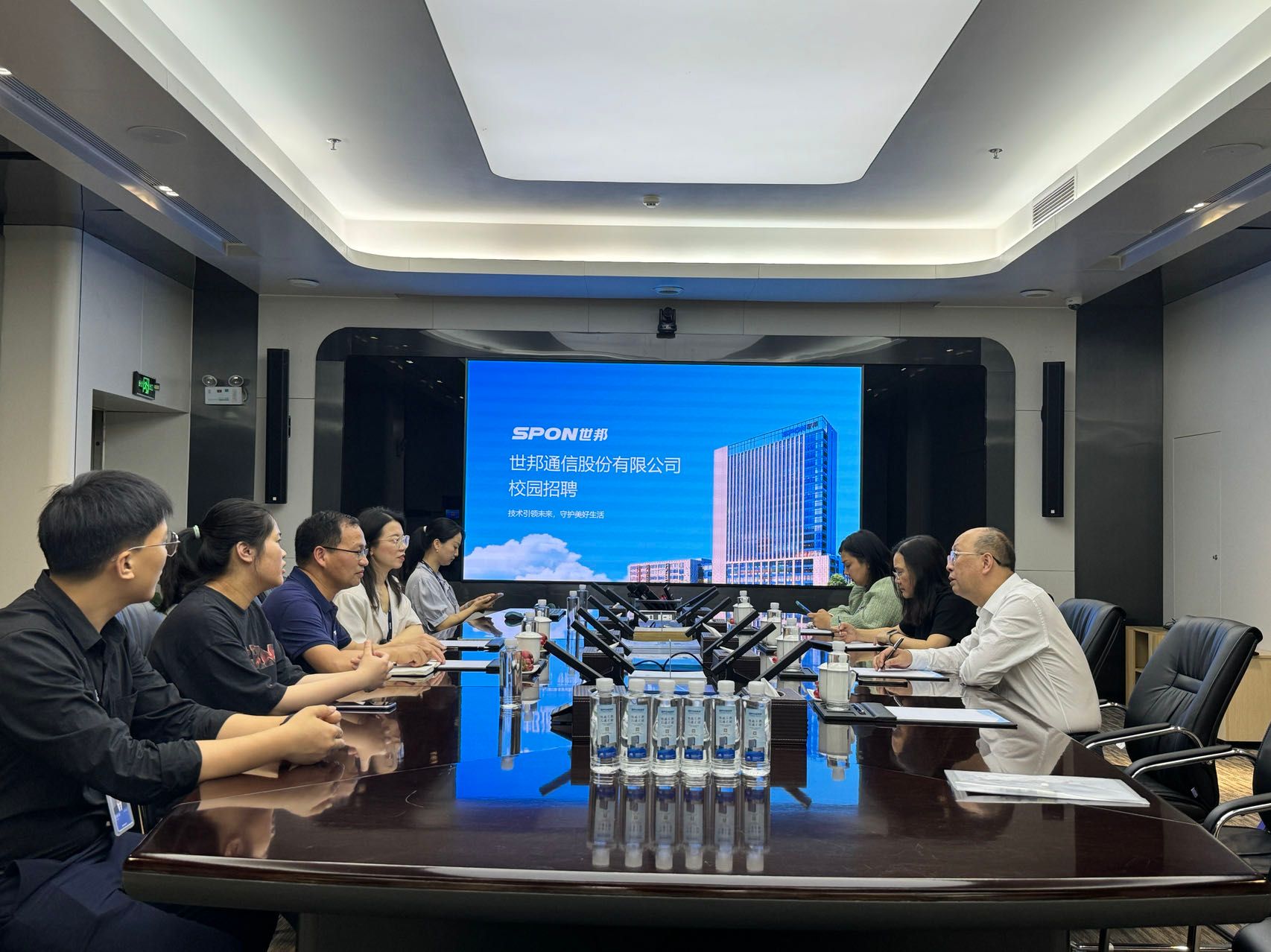 在世邦通信股份有限公司负责人的陪同下,赵鹤平一行参观了企业的研发中心、产品展示区,深入了解企业在通信技术领域的最新成果和发展规划。随后的座谈会上,双方就如何结合Beat365专业特色与企业实际需求,共同开展定制化人才培养方案,以及在实习实训、就业指导、科研合作等多个层面进行了深入探讨,并一致赞同建立长期合作关系,共同培养符合行业需求的高素质应用型人才。