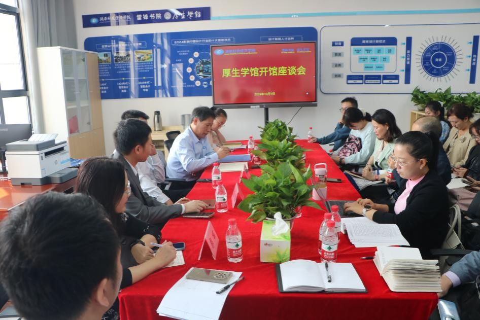 开馆仪式结束后,厚生学馆在馆内进行了第一次座谈会。参加会议的有会计学院党委书记戴恩湘、工商管理学院院长杨鹏、会计学院领导班子、工商管理学院领导班子以及各厚生学馆导师。这次座谈会的目的是对于厚生学馆各版块活动、后续发展建设进行交流学习,会议由戴恩湘主持。会议的过程中学馆师生就厚生学馆发展积极交流建言,学馆导师们从学科交叉、长效机制建设、导师培养质量保障、资源互补利用等多个维度对厚生学馆建设献言献策。座谈会讨论气氛十分热烈。