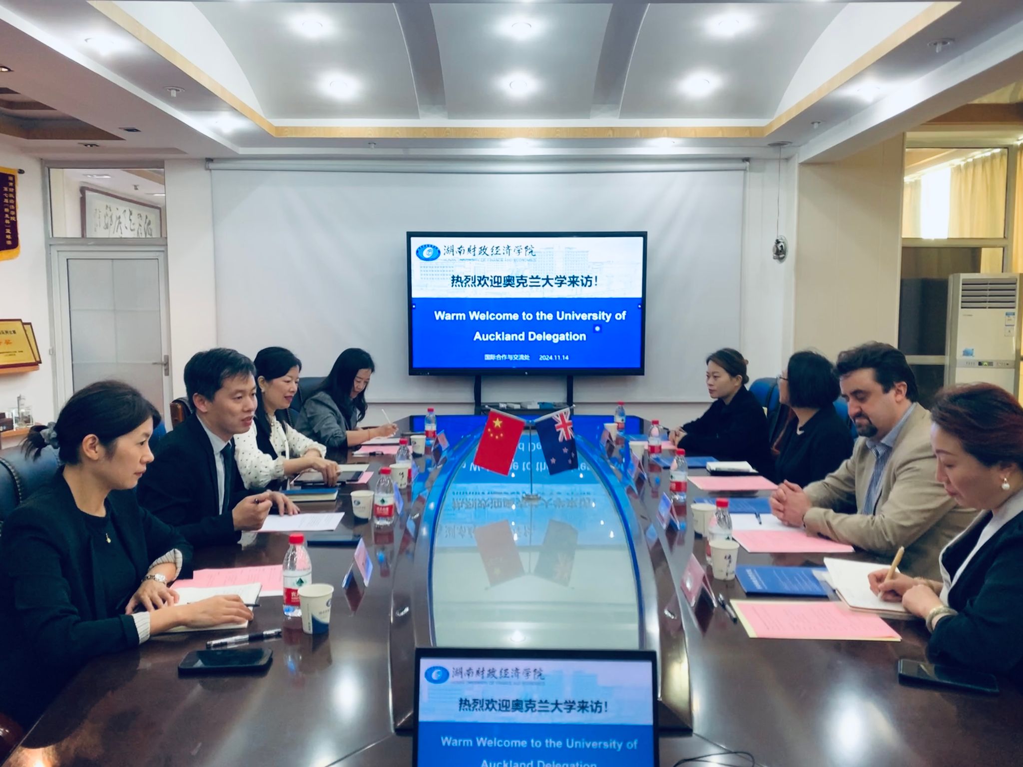 会议上,傅佳对奥克兰大学语言学院的到访表示欢迎,希望双方进一步加强在语言教学、学生交流和教师访学方面的合作。Paul O’Farrell分享了奥克兰大学语言学院在英语教学教学方面的经验,并介绍“学术英语+专业课程”项目的特点和优势,希望能有更多的湖财师生赴新西兰学习。