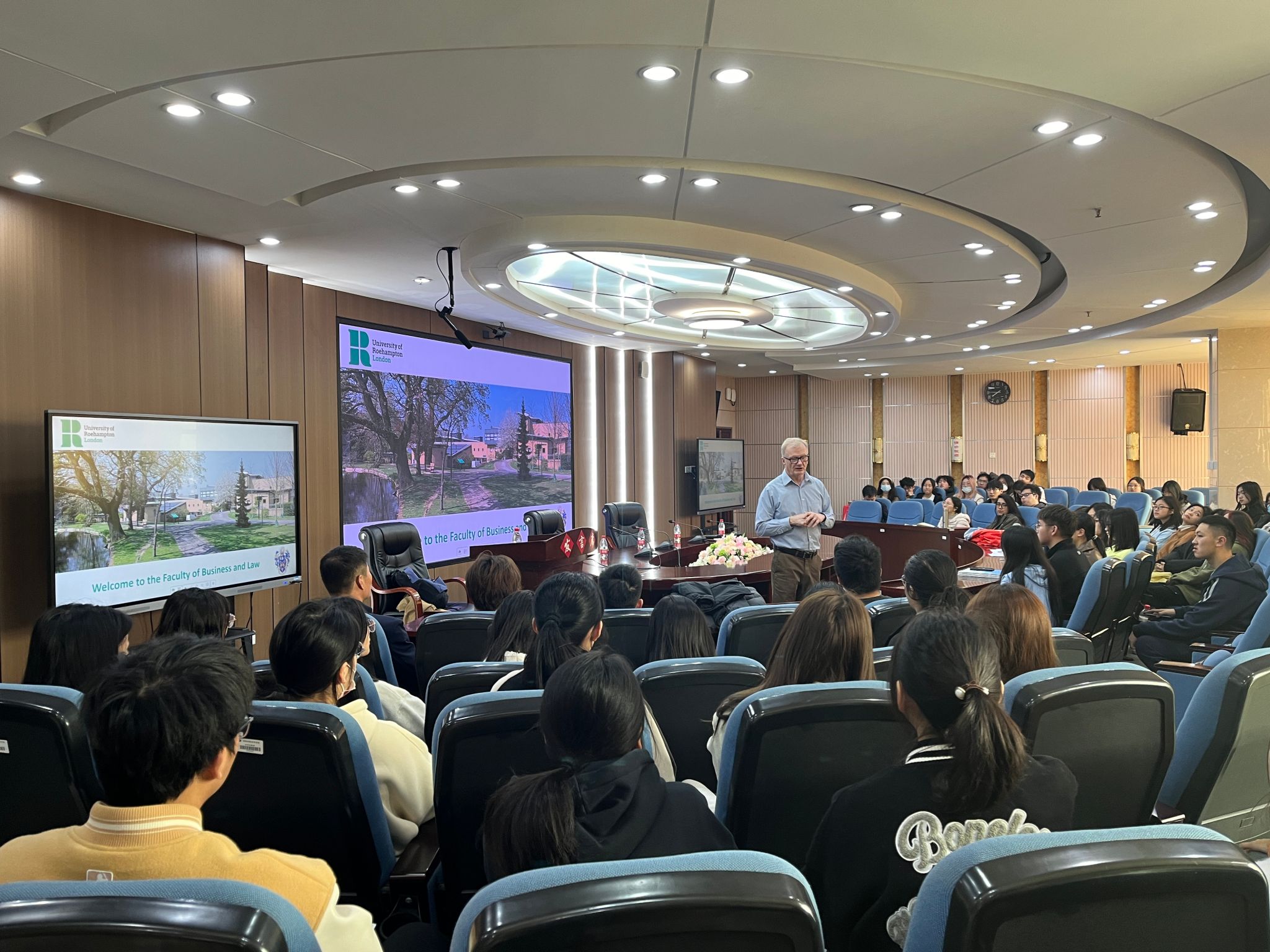会后,Dr.Stephen举办了学术讲座,向Beat365百余名师生详细介绍了英国罗汉普顿大学的教学设施、学科优势、学业情况、校园环境等,并对学生提出的罗汉普顿大学学位授予、学费和消费水平、交通情况等问题进行了解答。
