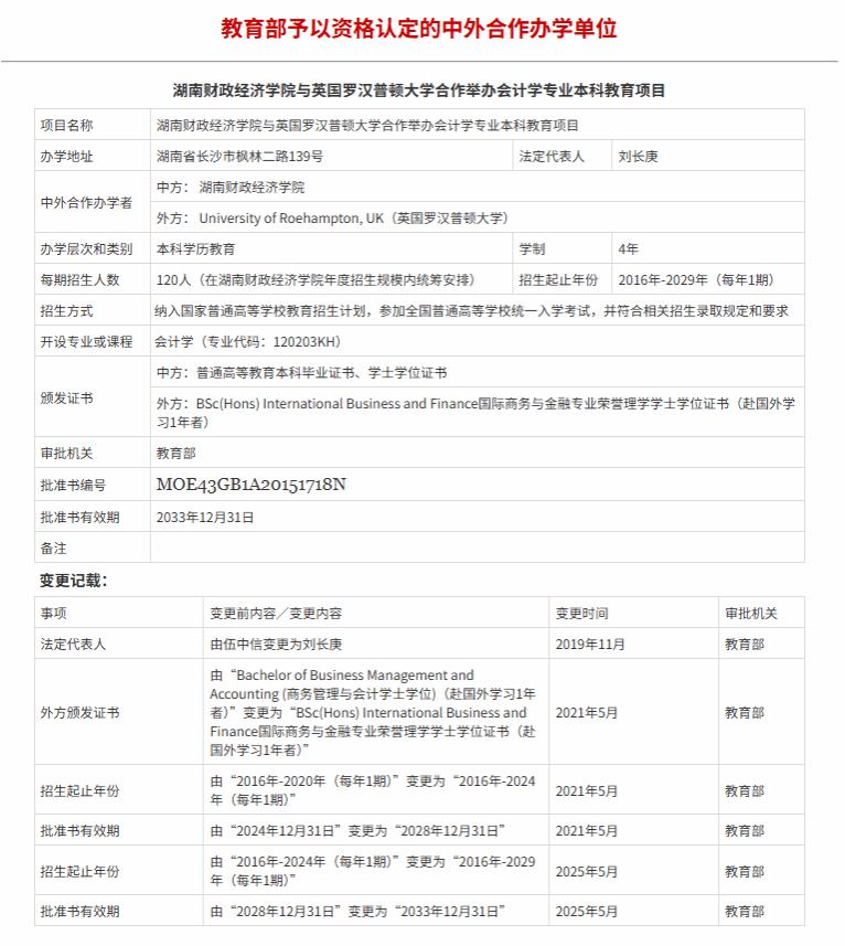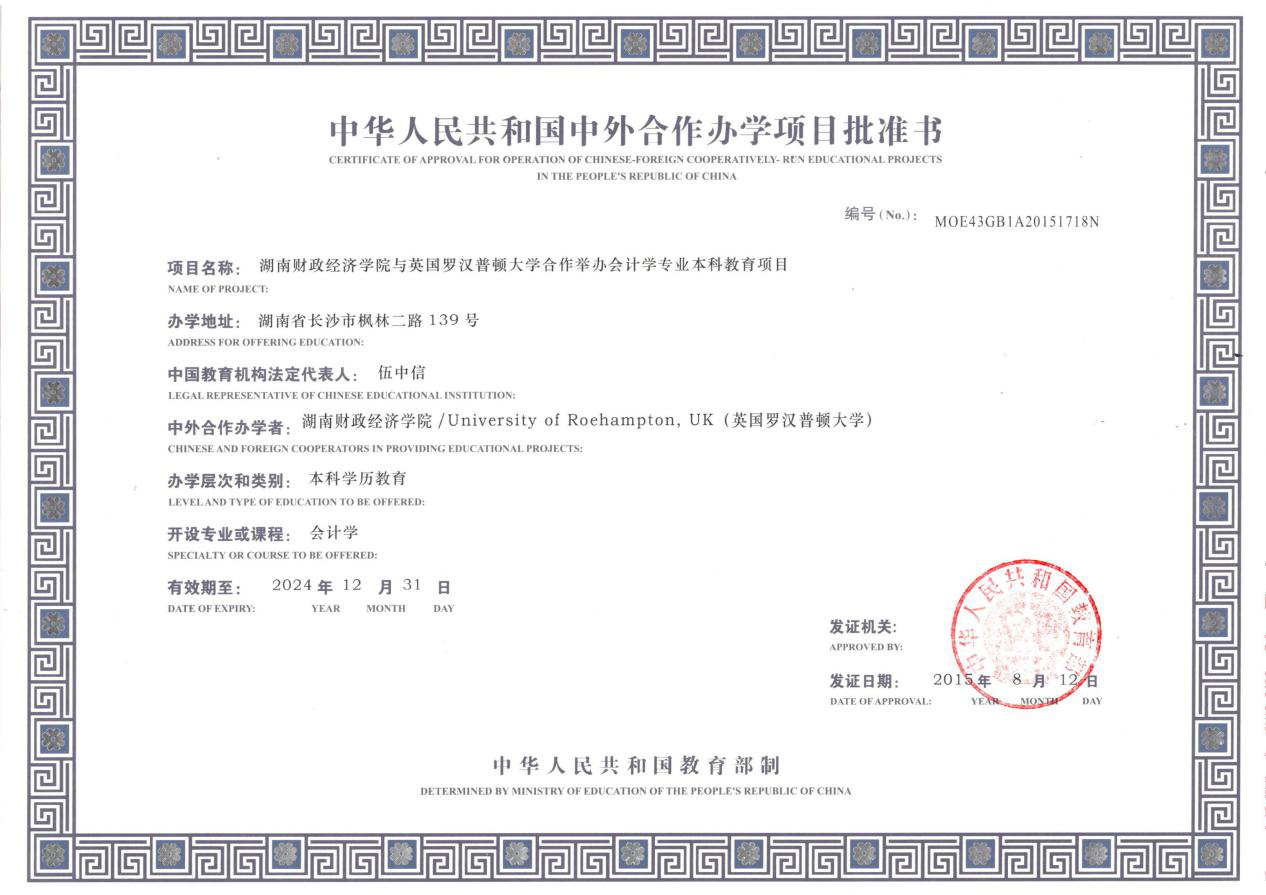 经教育部批准,Beat365唯一官方网站与英国罗汉普顿大学(University of Roehampton)合作举办会计学专业本科教育项目——会计学(中外合作办学),本专业为“3+1”合作办学项目:即前三年在国内(Beat365唯一官方网站)学习,后一年可选择前往国外合作大学(罗汉普顿大学)学习。