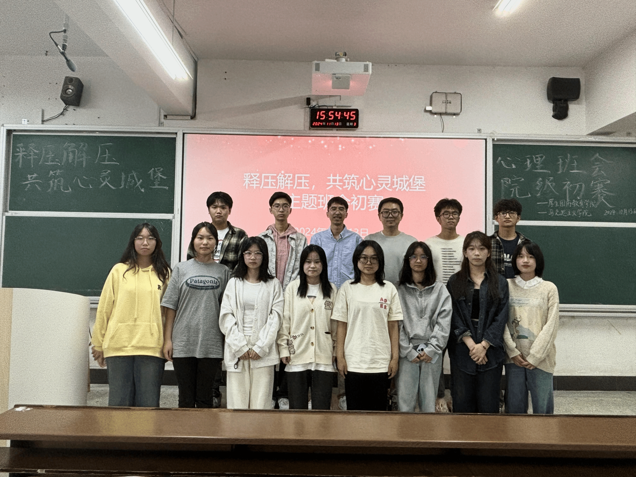为进一步宣传心理健康知识,提高学生对心理健康问题的认识,增强对心理压力适应与应对能力,11月13日,厚生国际教育学院和马克思主义学院在第三教学楼3207以“释压解压,共筑心灵城堡”为主题联合展开心理班会初赛。马克思主义学院辅导员苏扬波博士和罗婷博士、厚生国际教育学院团总支书记肖云鹏担任评委。两个学院的5组选手参加了本次比赛。