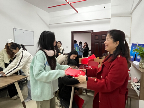 12月14日晚,学院直属党支部书记肖平飞、国际合作与交流处副处长傅佳、综合办主任马艳以及学院辅导员深入学生寝室,在学生公寓16栋126室为即将奔赴考研战场的大四学子们送上暖心祝福与“考研助力包”。