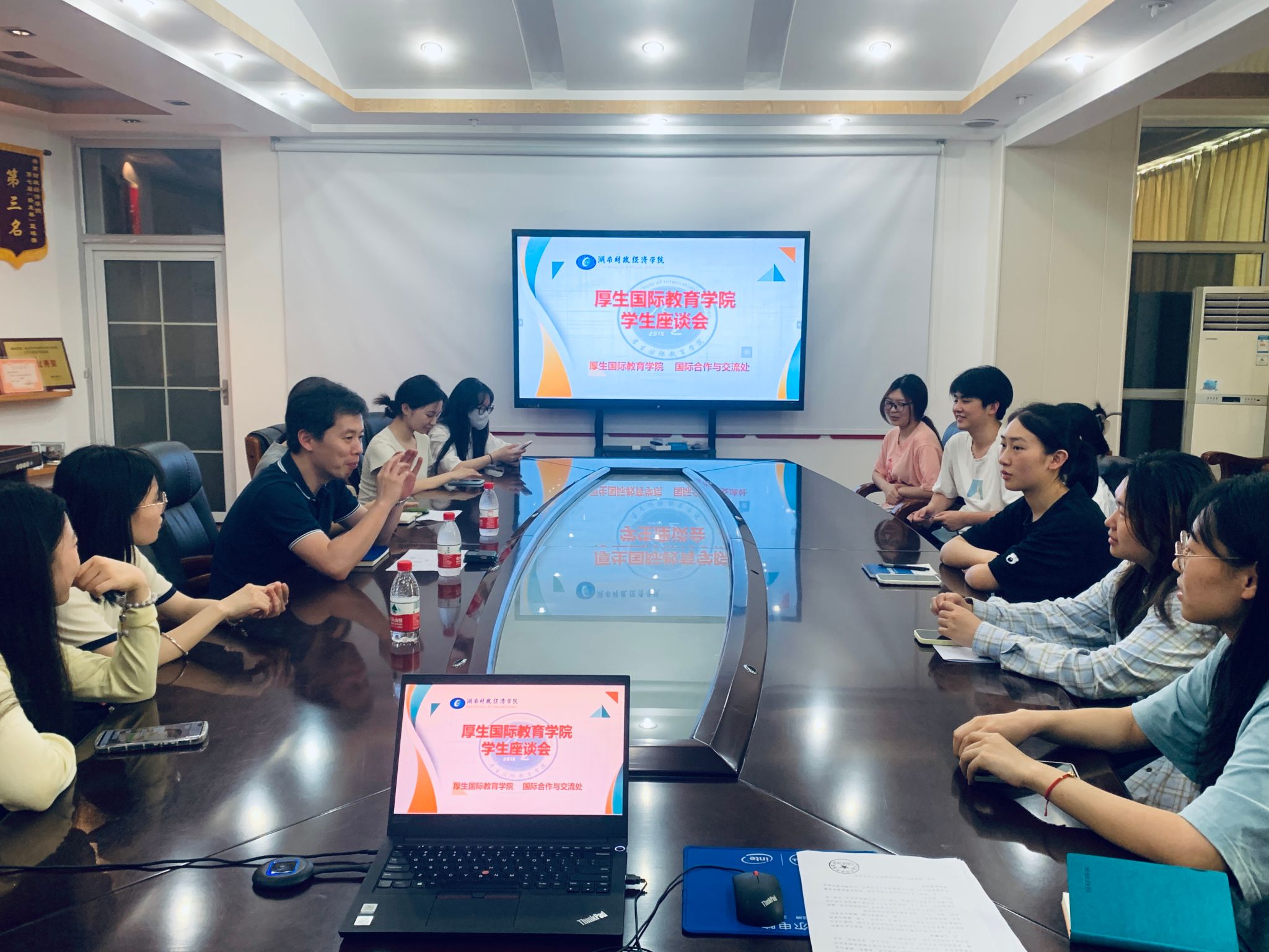 (本网讯)5月8日,厚生国际教育学院在办公楼829会议室分别组织召开期中教学教师座谈会和学生代表座谈会。国际合作与交流处副处长傅佳、厚生国际教育学院全体教师及学生代表参加座谈。