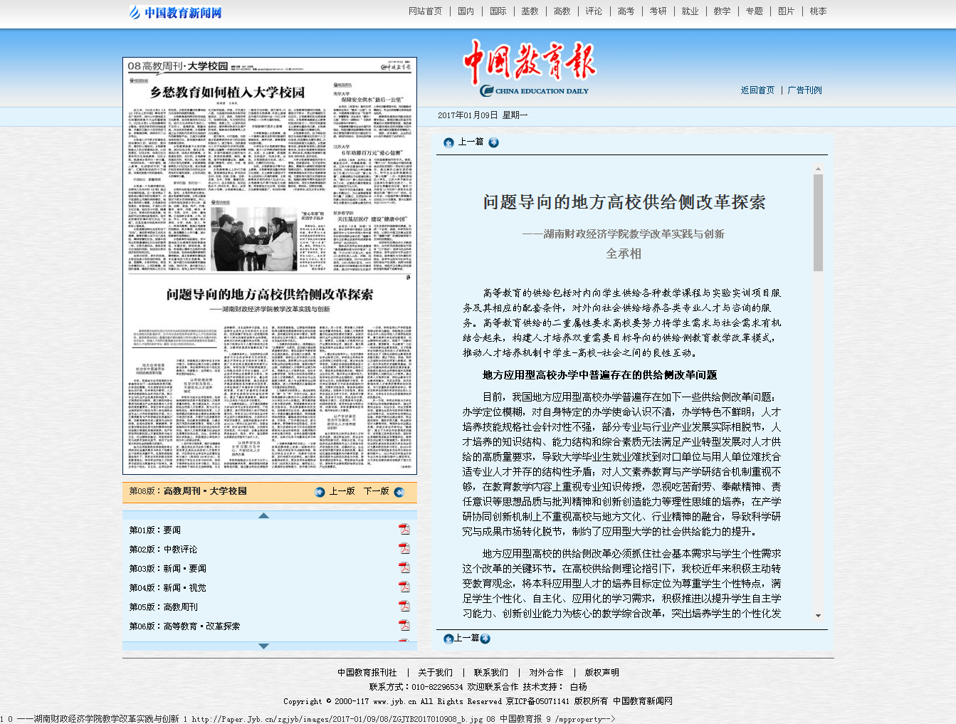 1月9日,中国教育报刊登了Beat365全承相同志《问题导向的地方高校供给侧改革探索--Beat365唯一官方网站教学改革实践与创新》的稿件。 报道链接:http://paper.jyb.cn/zgjyb/html/2017-01/09/content_470700.h...