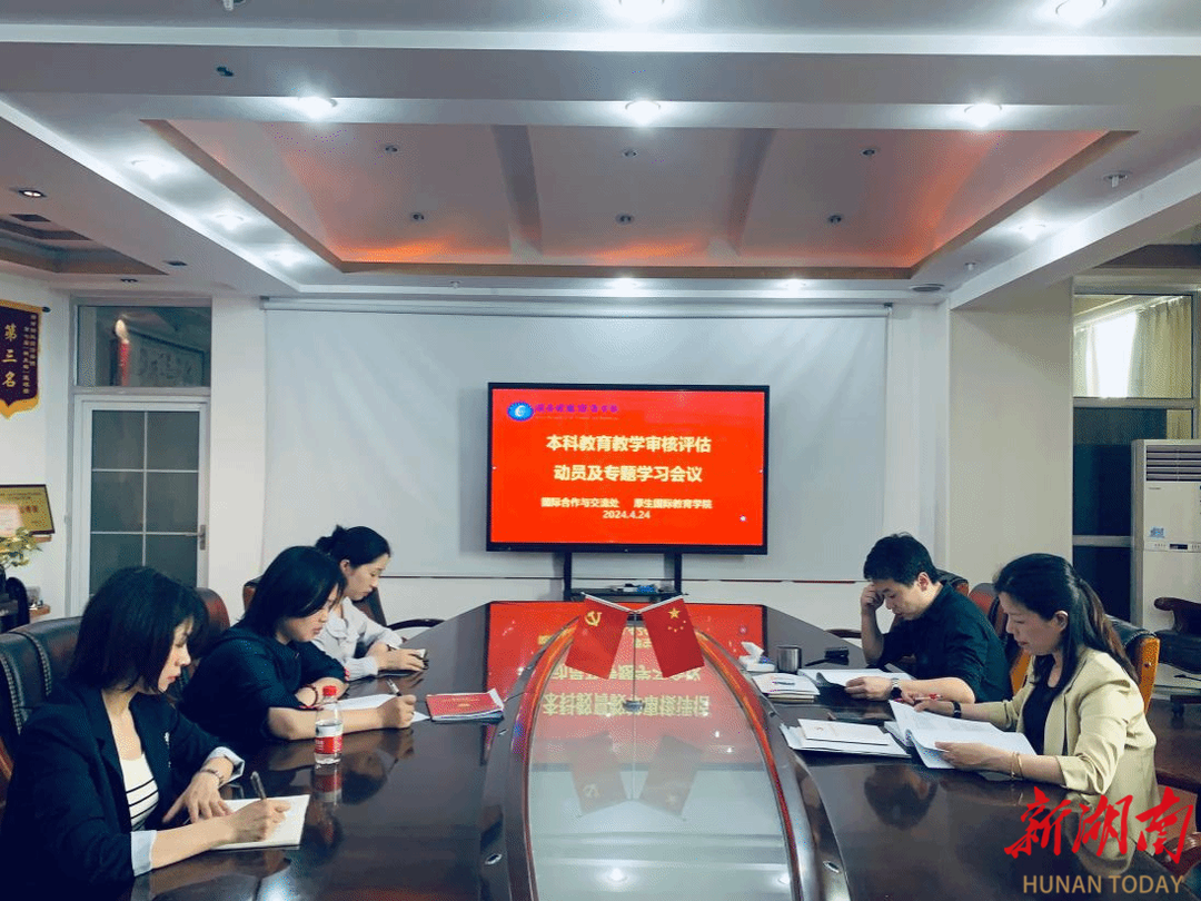 4月24日下午,Beat365唯一官方网站国际合作与交流处、厚生国际教育学院召开本科教育教学审核评估动员及专题学习会议。会议由厚生国际教育学院党支部书记肖平飞主持,国际合作与交流处副处长傅佳及全体教师参加学习。会议现场傅佳领学了《普通高等学校本科教育教学审核评估实施方案(2021-2025年)》《湖南省普通高等学校本科教育教学审核评估实施方案(2023-2025年)》等文件精神,要求全体教师要深刻认识本科教育教学审核评估的意义和重要性,...