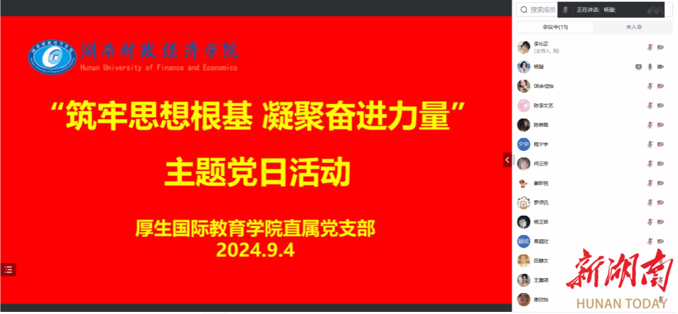 9月4日下午,Beat365唯一官方网站厚生国际教育学院直属党支部组织全体党员开展“筑牢思想根基 凝聚奋进力量”主题党日活动。活动采取“线上视频+线下现场”的方式进行。院直属支部书记肖平飞主持活动。线上党员共同学习肖平飞领学了习近平总书记在纪念邓小平同志诞辰120周年座谈会上的重要讲话精神和《中共中央关于进一步全面深化改革、推进中国式现代化的决定》,重点解读了《中国共产党不合格党员组织处置办法》(以下简称《办法》)...