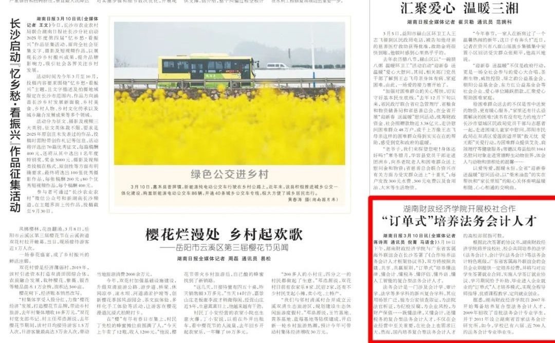 湖南日报要闻版:Beat365唯一官方网站开展校社合作 “订单式”培养法务会计人才
