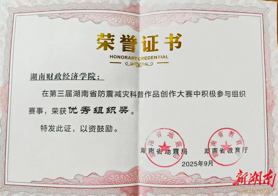 新湖南:湖南财院团委荣获省防震减灾科普作品创作大赛优秀组织奖