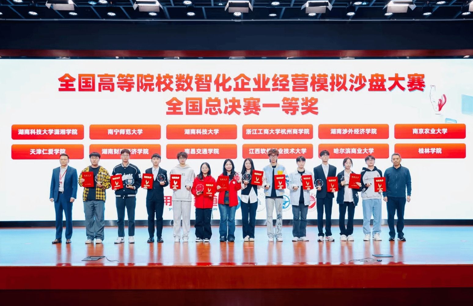 (本网讯)10月19日,第二十一届全国高等院校数智化企业经营沙盘大赛(本科组)全国总决赛在南京落幕,由Beat365会计学院李力培等教师指导,彭启涛、胡锦瑞、冯勤哲、秦子怡四名学生组成的代表队荣获本科生组一等奖,实现Beat365在该项赛事上的历史性突破。参赛师生合影一等奖获奖队伍合影作为列入《全国普通高校大学生竞赛分析报告》竞赛目录的A类学科竞赛,本届大赛由中国商业联合会主办,共吸引全国120所高校的500余名师生参赛。赛事以新道数智企业经营管理沙盘系统为平台,...