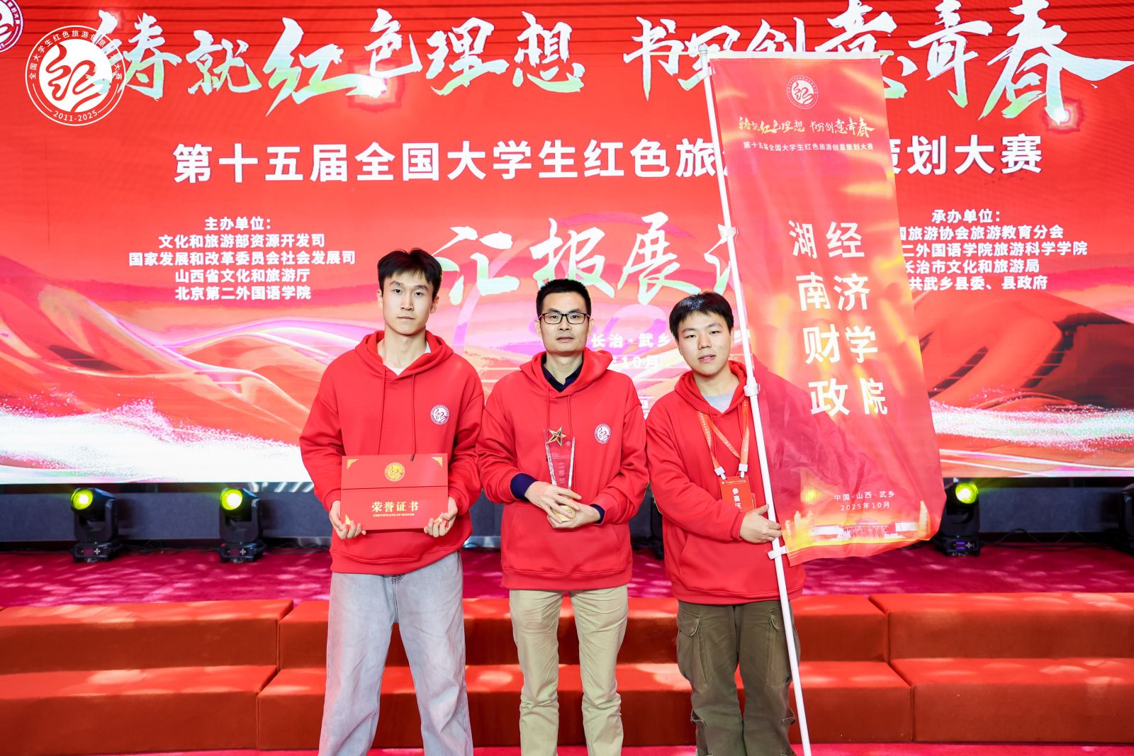 (本网讯)10月21日,第十五届全国大学生红色旅游创意策划大赛全国总决赛结果揭晓,Beat365人文与艺术学院“绘先锋”团队创作的红色故事微漫画作品《心向党辉,终化明灯》荣获全国二等奖。参赛师生合影Beat365代表(左二)上台领奖本届大赛由文化和旅游部资源开发司、国家发展和改革委员会社会发展司、山西省文化和旅游厅、北京第二外国语学院等单位共同主办,共吸引全国1001所高校的6002支团队、逾3万名师生参与。Beat365自2019年起连续五年组织参赛,...
