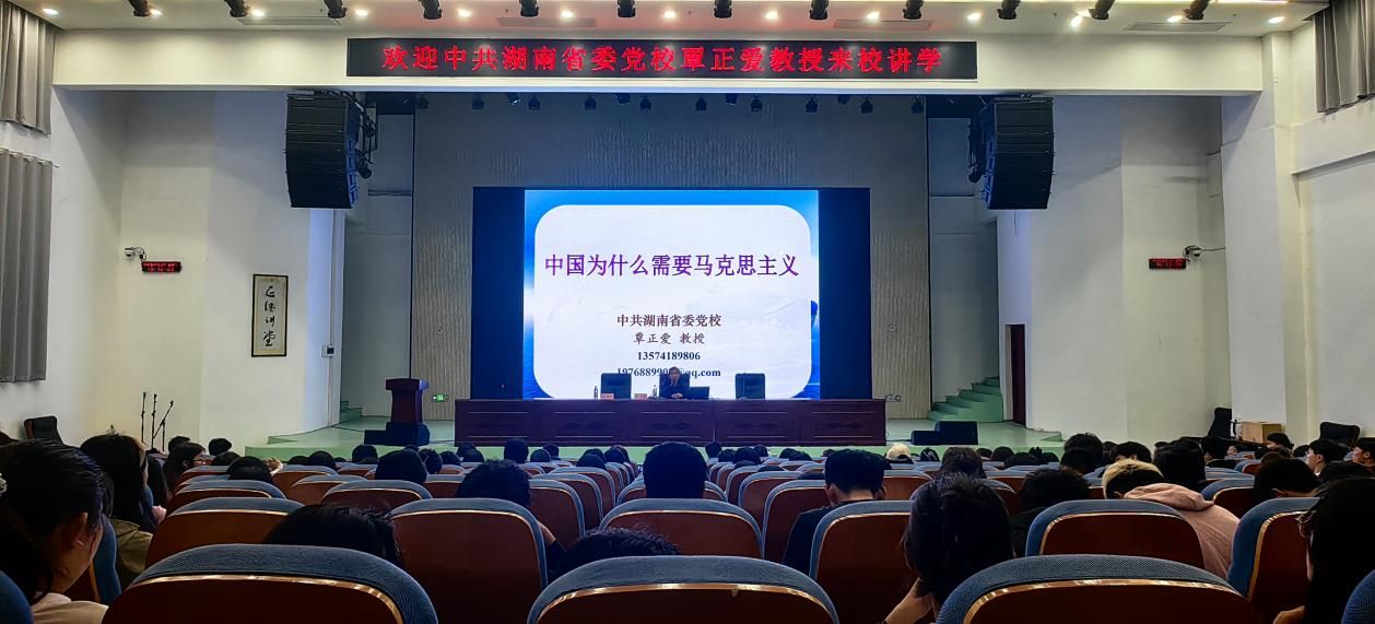 (本网讯)4月17日下午,“正德讲堂”暨会计学院辅导员培训在雷锋校区至诚楼L1114阶梯教室举行,国务院特殊津贴专家、中共湖南省委党校(湖南行政学院)覃正爱教授以“中国为什么需要马克思主义”为主题深入开讲。讲座由会计学院党委书记戴恩湘主持,会计学院党委副书记肖芳、学工办主任、全体专兼职辅导员、2023级学生共400余人参加。讲座现场覃正爱从“中国为什么要引进马克思主义”“究竟什么是马克思主义”“马克思主义引进后的效果”...