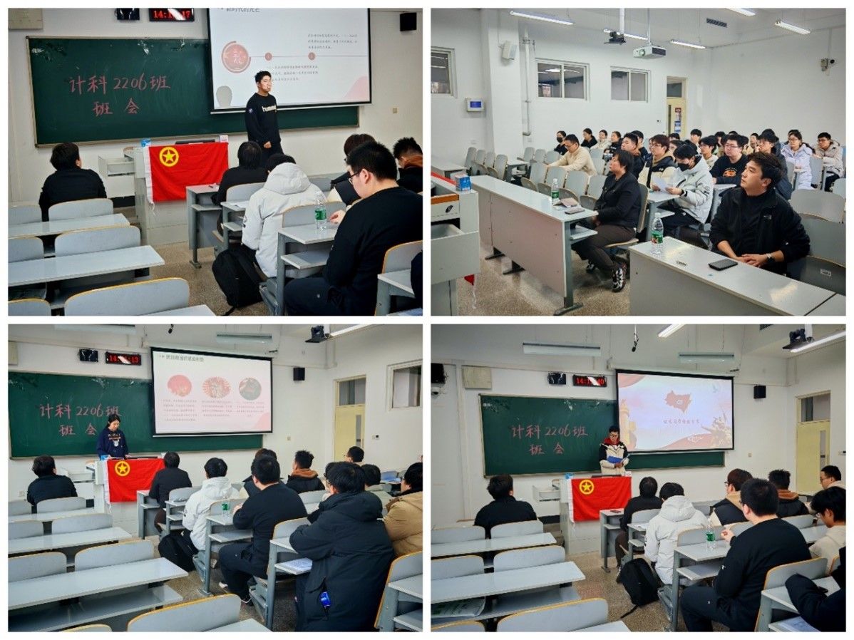 12月20日,学院副院长王聪深入联系班级,参加计算机科学与技术2206班在工学馆106开展的主题班会。辅导员陈晶晶、班级全体同学参会,会议由班长李瑀宸主持。
