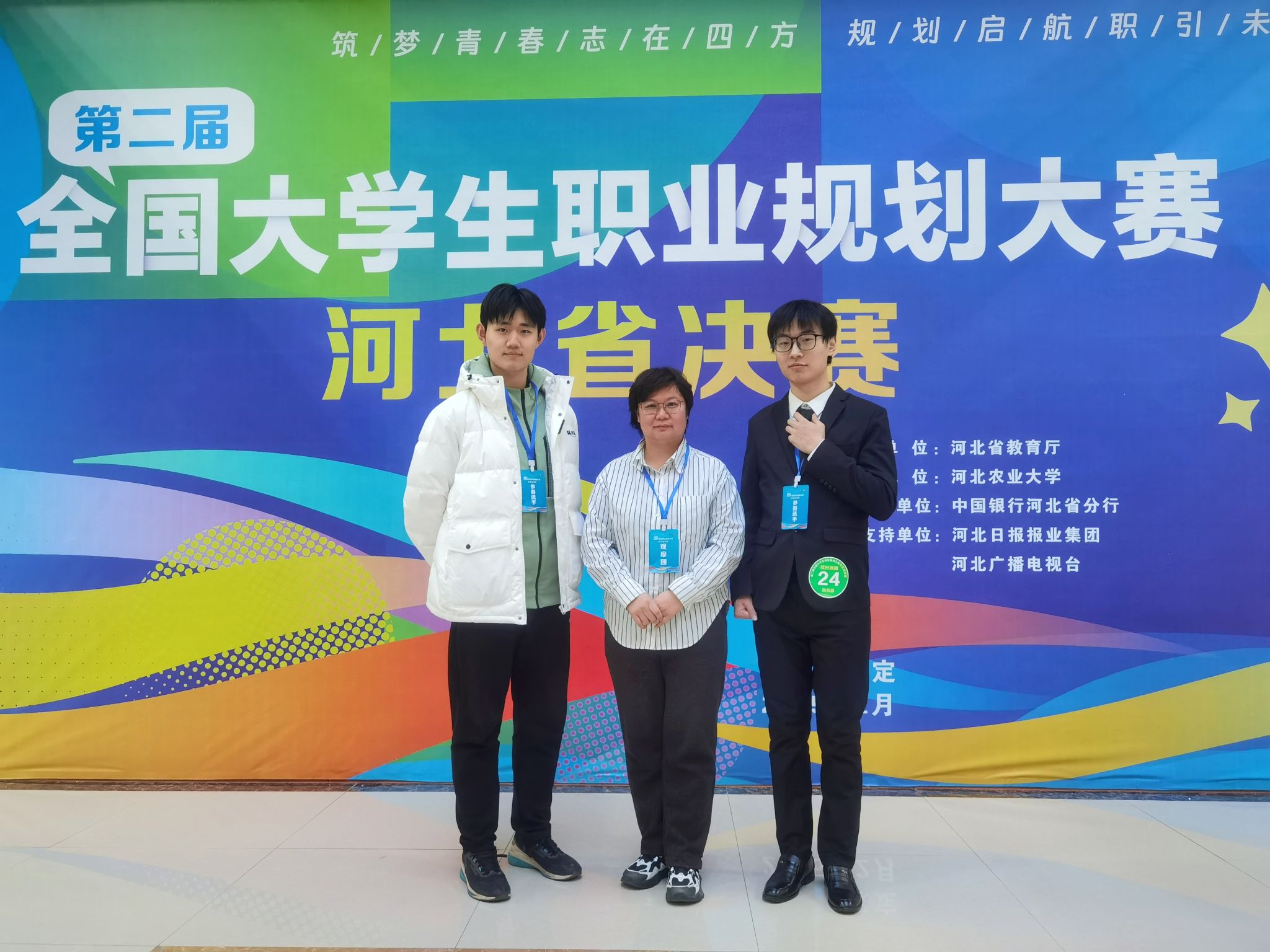 近日,由河北省教育厅主办的第二届大学生职业规划大赛决赛圆满落幕,威尼斯官网参赛选手张耀宇、庄新鱼分获一金、一银佳绩,指导教师陈晶晶获评优秀指导教师荣誉称号。