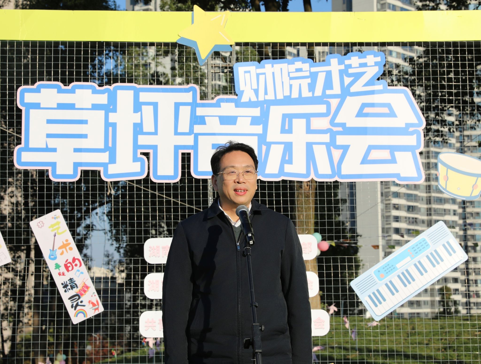 (本网讯)11月19日下午,由党委宣传部、工会、团委联合主办的“财院·才艺”首届草坪音乐会在校园西北角草坪举行。校党委书记易棉阳,党委副书记苏玲,副校长赵鹤平、副校长刘钟理、副校长潘爱民,党委委员、宣传部、统战部部长文炳勋等校领导出席活动。