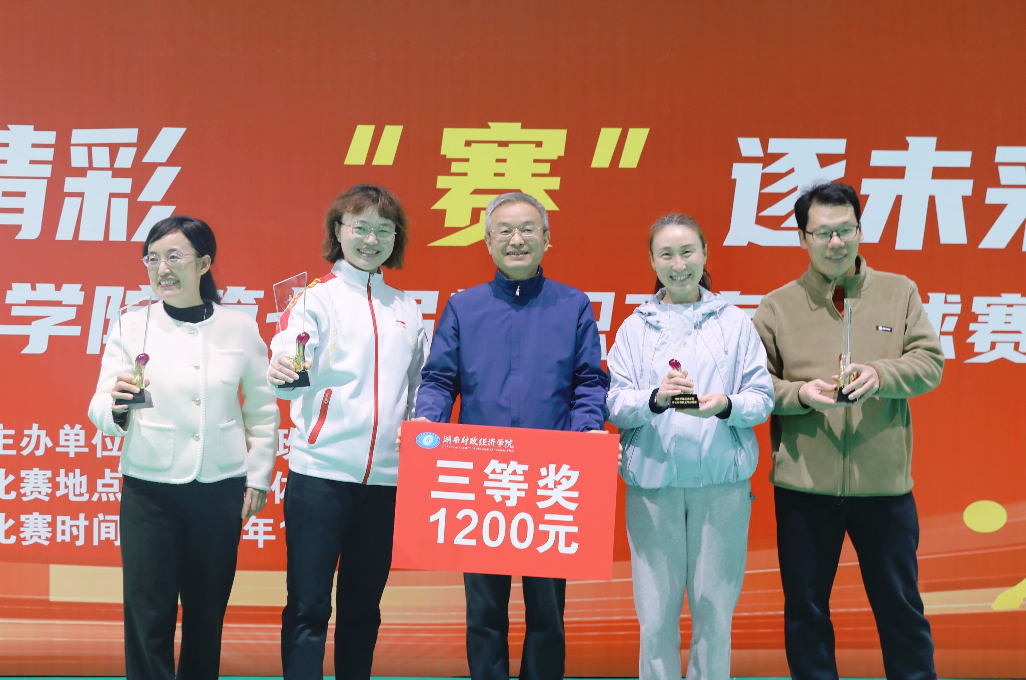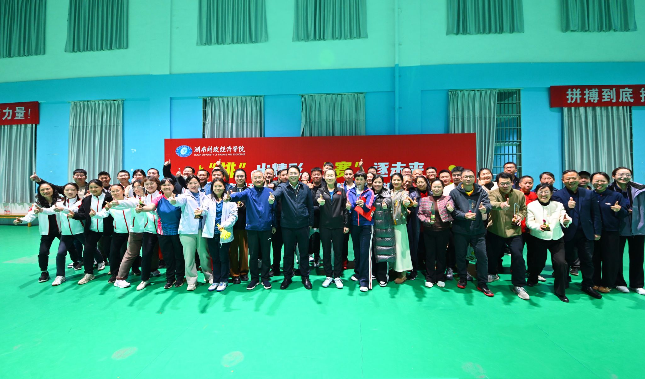 本届比赛采用五人制男女混合组队形式,设单循环赛与交叉名次赛两个阶段,实行三局两胜制。全校共有18支分工会代表队参与角逐。赛场上,队员们精神饱满、配合默契,发球精准、扣杀有力,精彩场面迭出,现场欢呼声、叫好声不断。经过四天比拼,体育学院分工会、机关二分工会获一等奖;雷锋书院分工会、工商管理学院分工会获二等奖;经济学院分工会、会计学院分工会、财政金融学院分工会、工程管理学院分工会获三等奖。