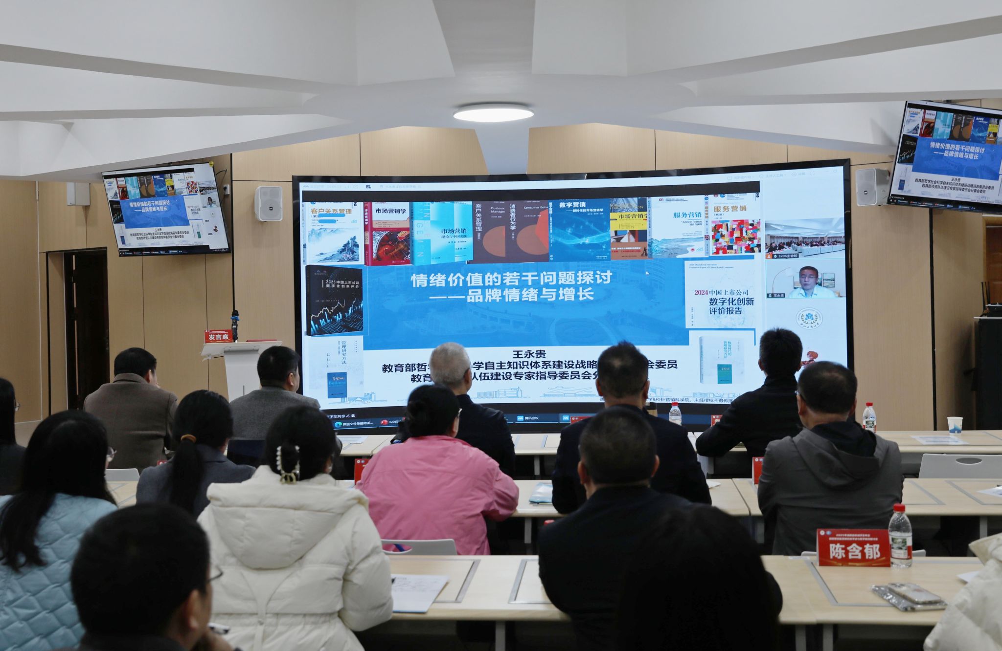 本次研讨会采用“主会场报告+平行分论坛”的形式。主会场围绕“数智赋能营销创新学术与教学教改”展开深入研讨。浙江工商大学校长王永贵以“情绪价值的若干问题探讨”为题,剖析数智时代消费者情绪需求的新特征与营销实践的适配方向;武汉大学数据科学研究中心主任黄敏学就“数智场景商务:实践创新与理论前沿”分享了数智技术驱动下营销场景的重构逻辑与创新案例;浙江财经大学科研处处长王建明以“绿色低碳消费趋势(2025)洞察和解读”为题,深刻阐述了绿色消费的政策导向、市场现状与企业营销转型策略;江西财经大学科研处处长谌飞龙围绕“科技成果转化与创业营销”,探讨了技术商业化过程中的营销链路构建与资源整合策略。