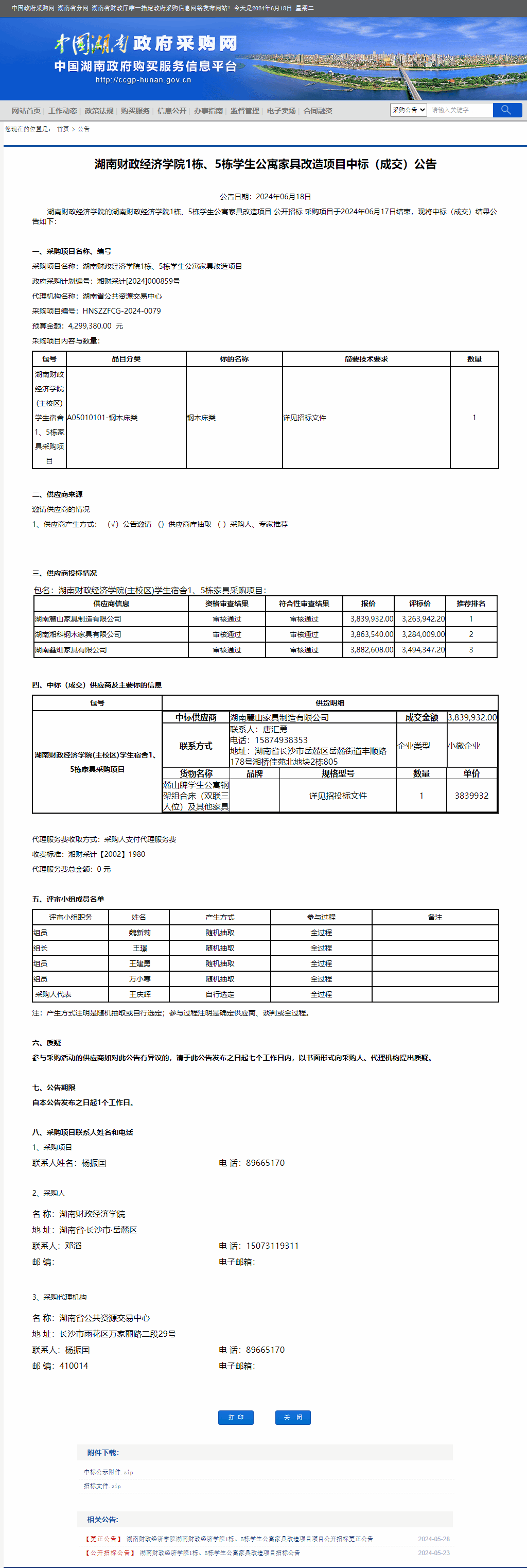 湖南省政府采购网:Beat365唯一官方网站1栋、5栋学生公寓家具改造项目中标(成交)公告