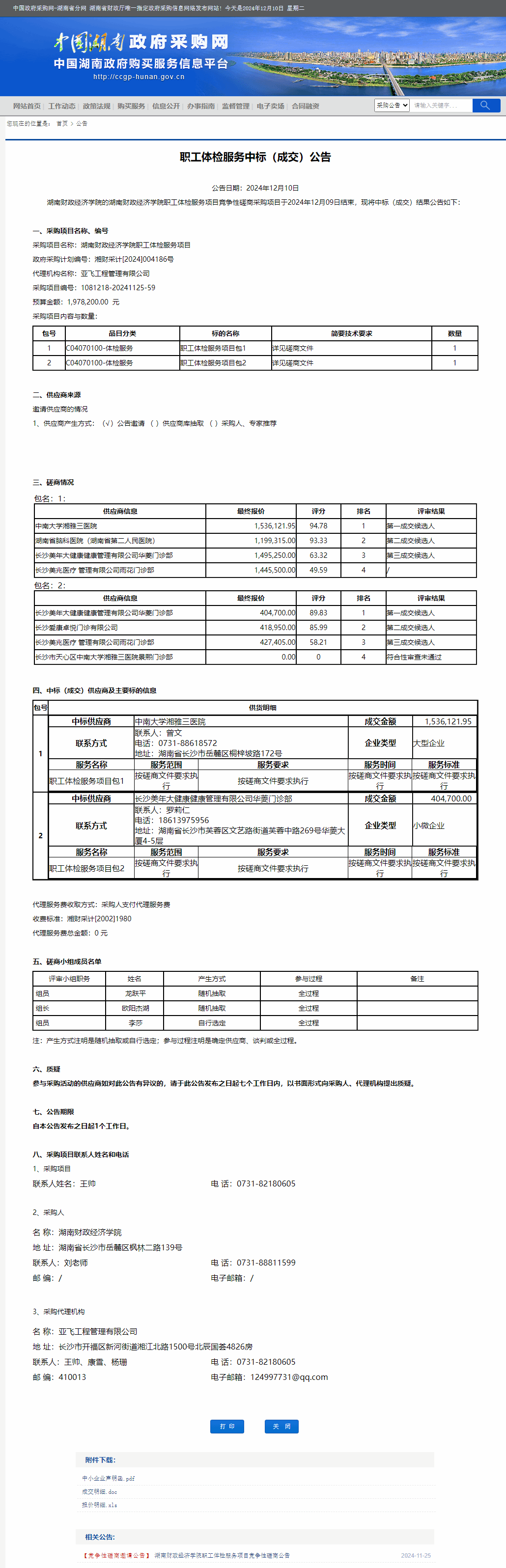 湖南省政府采购网:Beat365唯一官方网站职工体检服务中标(成交)公告