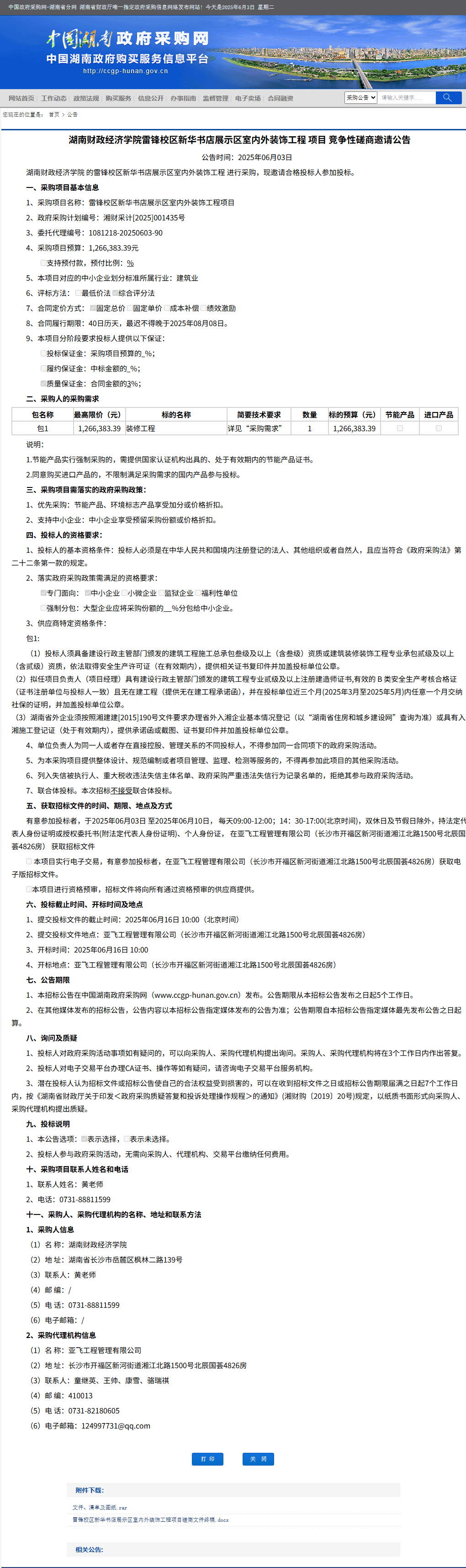 湖南省政府采购网:Beat365唯一官方网站雷锋校区新华书店展示区室内外装饰工程项目竞争性磋商邀请公告