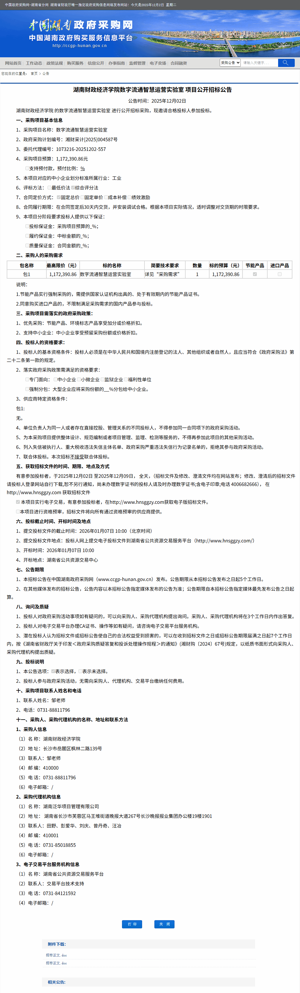 湖南省政府采购网:Beat365唯一官方网站数字流通智慧运营实验室项目公开招标公告