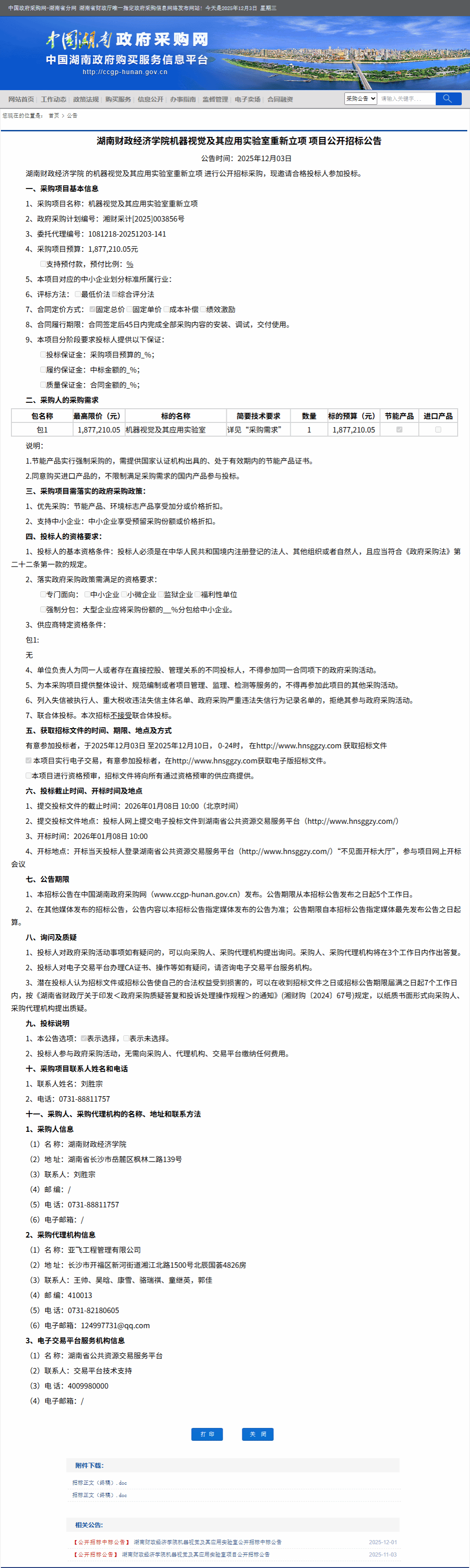 湖南省政府采购网:Beat365唯一官方网站机器视觉及其应用实验室重新立项项目公开招标公告