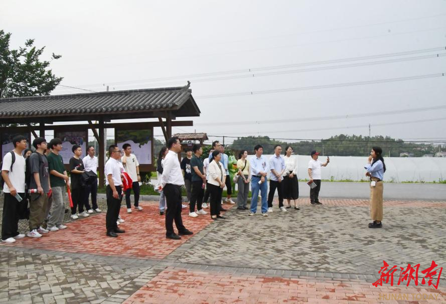 随后,师生正式抵达白箬铺镇龙莲村。“1917年,青年毛泽东和好友萧子升不带分文启程游学,白箬铺镇是他们调研的第一站”,研学向导的开场白一瞬间就将师生思绪激起涟漪。循着伟人游学足迹,走过虎踞亭、立志书院、幸福书院、调查研究主题展馆和白箬铺茶馆等景点,伴随着向导声情并茂的讲解,青年毛泽东的社会调查之路愈发清晰立体。师生深入学习体悟“没有调查,就没有发言权”的深刻内涵及老一辈革命家始终坚持深入实际亲身调研的求真务实作风与精神。