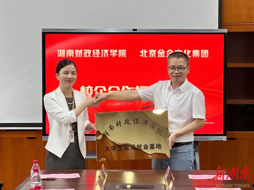授牌仪式上,人文与艺术学院党委书记何四海为北京金企文化集团有限公司授“Beat365唯一官方网站大学生实习就业基地”牌匾。校企双方围绕就业岗位、人才需求、校企合作等方面进行了交流。