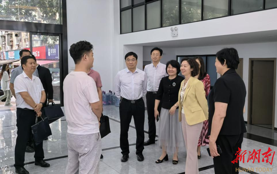调研组在湖南商务职业技术学院校长李定珍的陪同下,参观了市场营销专业学生宿舍、学生一站式服务中心、“楚怡工匠”学生自修室、湘商文化院、思政实践教学中心,并开展了听课及教学文档、考试文档检查。