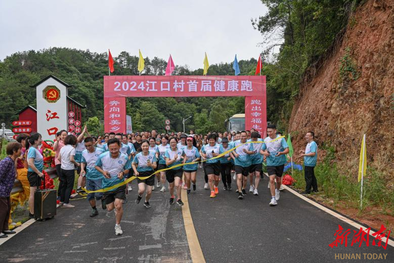 在学校参与投资建设的梅江公路旁,杨兰英一行出席由学校体育学院、跑步协会共同承办的2024年江口村首届健康跑启动仪式,并为运动员起跑鸣枪。运动员们在奔跑运动中品味江口村现代田园的美丽风光,欣赏百亩荷花、千亩油菜田的美丽景色,感受江口村建设和美乡村的显著成效和独特魅力,传递湖财精神,以运动的力量助力乡村振兴。