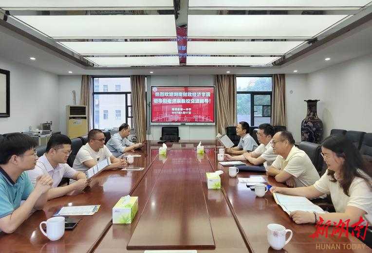 刘长庚(右三)与优质生源基地湘潭县一中负责人座谈