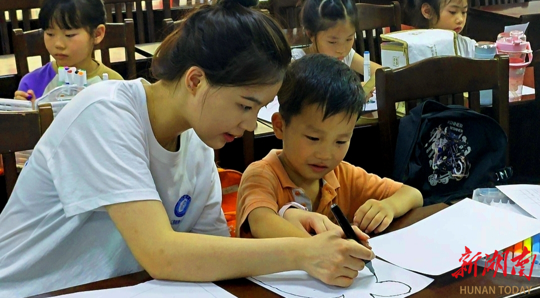 (志愿者指导孩子绘画)
