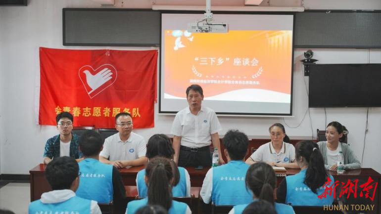 在五里洲村党群服务中心,学院领导老师与服务队成员进行了座谈交流。戴恩湘对志愿者们表达了亲切关怀,并强调在开展活动时应注意安全、注意形象,争取在本次社会实践活动中取得实效,展现学院风采。肖芳以种子为喻,希望志愿者们将此次实践体会如种子深埋心中,于祖国各地生根发芽,贡献青春力量。蔡益华希望志愿者们发挥模范作用,积极投身祖国基层。志愿者们纷纷表示,将不负韶华、砥砺前行,用自己的实际行动展现湖财人的独特风采。