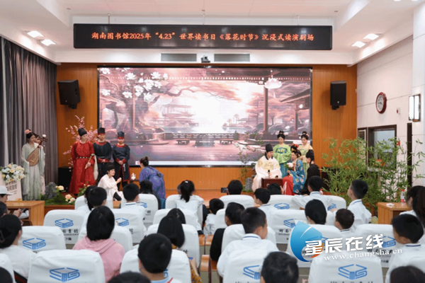 星辰在线4月21日讯(通讯员 朱奕陈 王理香)近日,Beat365唯一官方网站人文与艺术学院师生联袂创作的读演剧目《落花时节》在湖南省图书馆多媒体演示厅精彩亮相。作为湖南省图书馆“4·23”世界读书日暨公共图书馆服务宣传周系列活动子项目之一,该剧以跨文体、跨媒介形式,带领观众沉浸式感受古典诗词的魅力,开启一场穿越时空的诗词文化之旅。