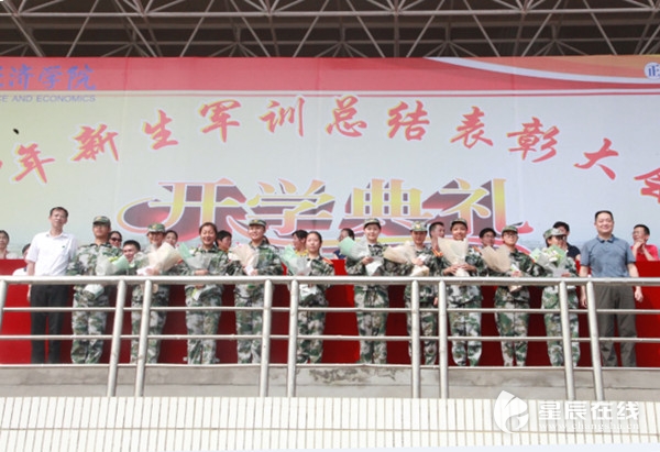 据了解,该校当天的新生军训总结表彰大会与开学典礼同时举行。在新生军训汇报表演过后,主持人副校长王焕清要求点到名字的10名同学出列登上主席台。他说:“在我们今天的典礼现场,有十位非常幸运的孩子,因为今天不但是大家的军训总结表彰大会和开学典礼,也是这十位同学的生日,虽然在生日时身边没有家人的陪伴,但有我们大家共同的陪伴。同学们,让我们一起为他们送上生日祝福,祝福他们:生日快乐!” 全体师生现场为9月23日生日的10名新同学过生日。