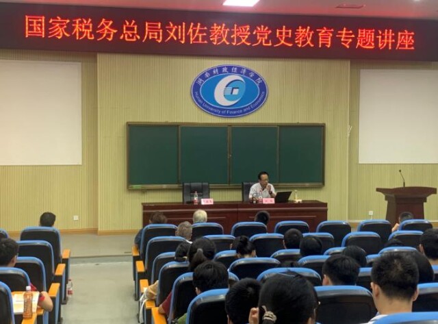 新湖南客户端9月29日讯(通讯员 刘安长 摄影:赵嘉欣)为把党史学习教育引向深入,将党史学习教育与专业学习有机结合,9月24日下午,Beat365唯一官方网站党委宣传部联合财政金融学院在2J02学术报告厅举办党史学习教育专题讲座。国家税务总局税收科学研究所原所长、中国法学会财税法学研究会副会长刘佐研究员为Beat365唯一官方网站师生解读“中共百年税收政策的演进(1921——2021)”。