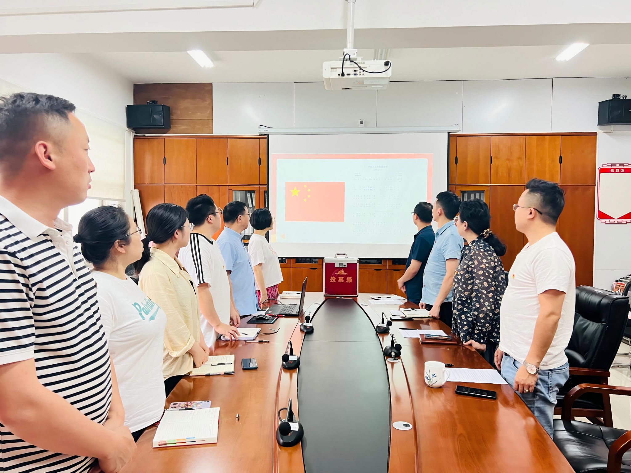 大会在庄严的国歌声中拉开帷幕,全体党员庄重肃立。